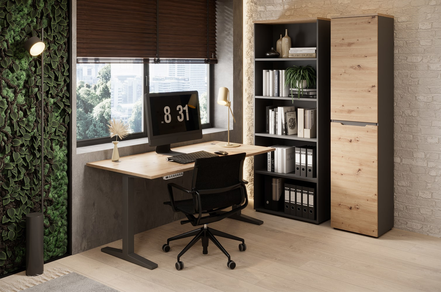 Regał Brego to smukły i funkcjonalny mebel o wysokości 197 cm i szerokości 38 cm, zaprojektowany z myślą o efektywnym wykorzystaniu pionowej przestrzeni. Dzięki kompaktowej formie dobrze sprawdza się w pomieszczeniach, w których liczy się oszczędność miejsca. Głębokość 38 cm pozwala wygodnie przechowywać książki, dekoracje i akcesoria, jednocześnie nie zajmując dużej powierzchni podłogi.