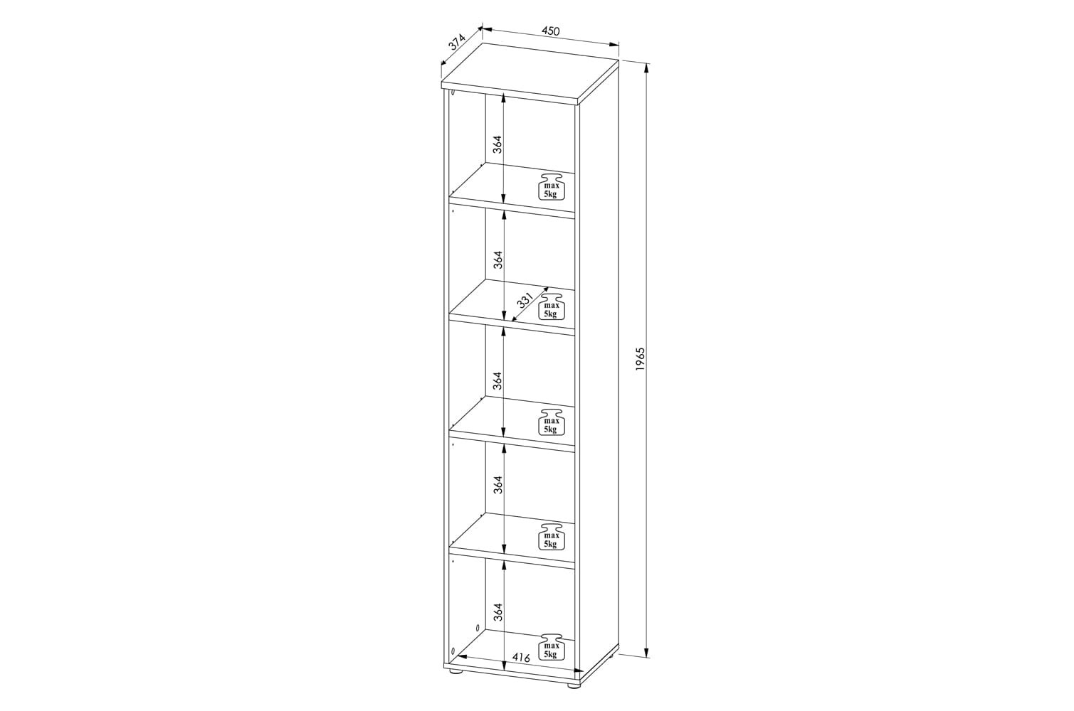 Dzięki wymiarom 38 cm szerokości, 38 cm głębokości oraz 197 cm wysokości regał pozwala efektywnie wykorzystać przestrzeń w pionie. Taka konstrukcja zapewnia sporą pojemność przy niewielkim zapotrzebowaniu na miejsce, co sprawia, że mebel dobrze sprawdza się również w mniejszych pomieszczeniach.