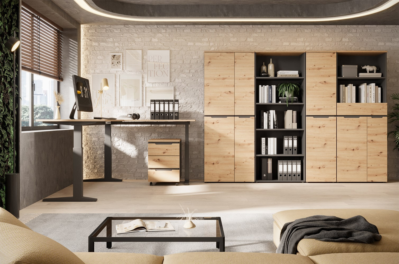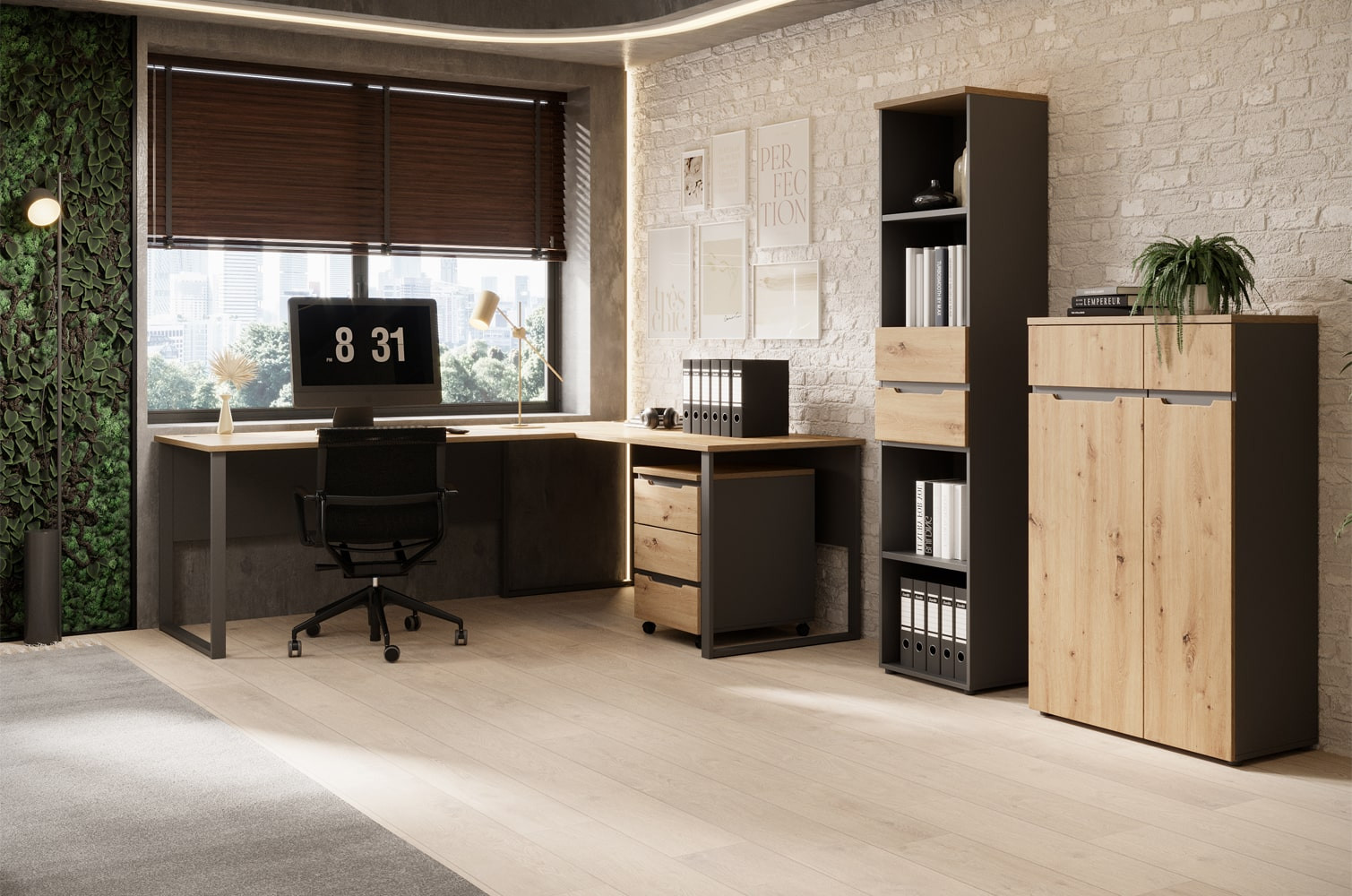 Szafka Brego to smukły i funkcjonalny mebel, który ułatwia zagospodarowanie nawet węższych przestrzeni w domu. Prosta, nowoczesna forma sprawia, że dobrze wpisuje się w różne aranżacje wnętrz – od salonu i gabinetu po przedpokój. Gładki front z płaskim uchwytem zapewnia wygodne otwieranie, jednocześnie podkreślając minimalistyczny i estetyczny charakter bryły.