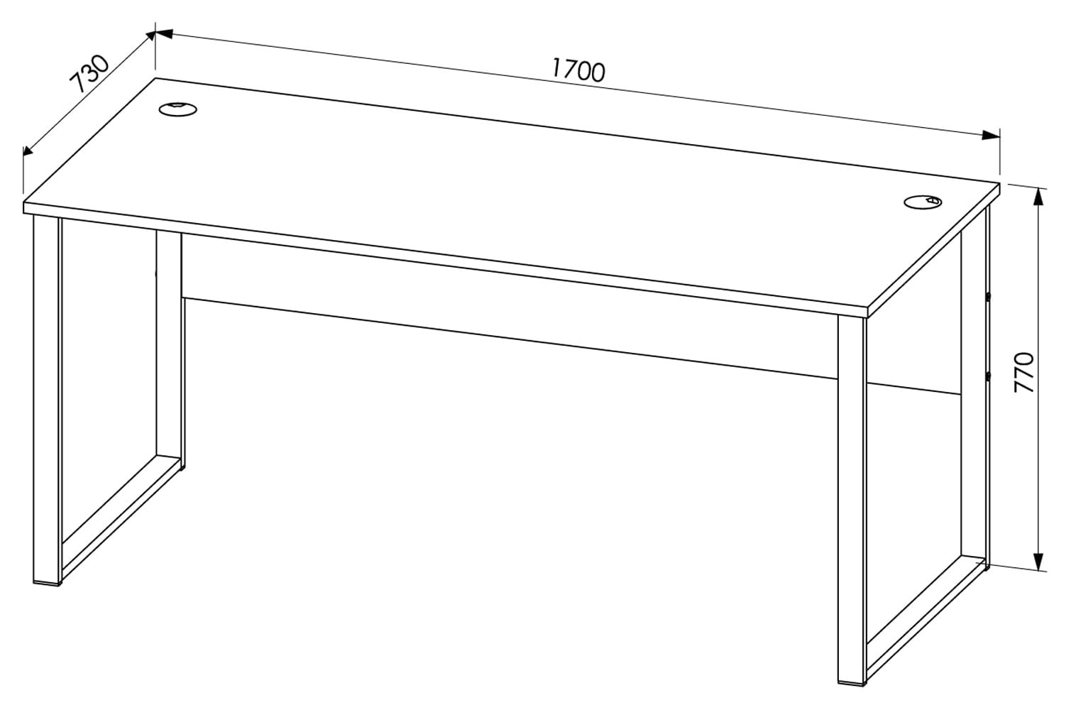 Blat wyposażono w przelotki na przewody, które umożliwiają uporządkowanie kabli oraz estetyczne poprowadzenie okablowania od urządzeń biurowych. Dzięki temu stanowisko pracy pozostaje uporządkowane, a powierzchnia blatu może być wykorzystywana w pełni.