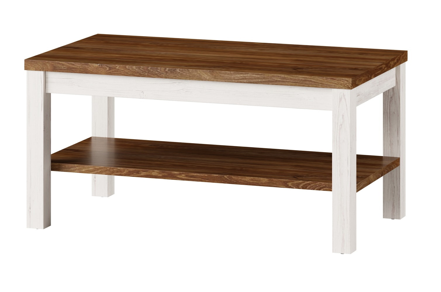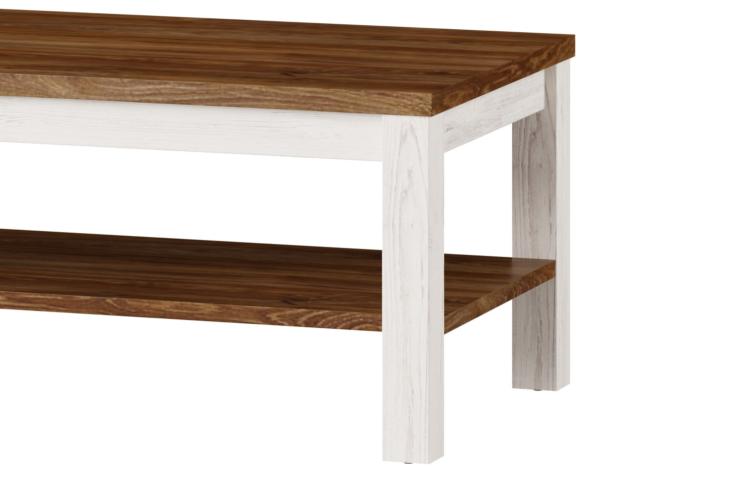 Stolik okolicznościowy z blatem pokrytym laminatem. Doskonały do niskich mebli typu sofy i fotele. Wypełni wnętrze ciepłymi barwami dębu stirling i sosny andersen i z pewnością przypadnie do gustu miłośnikom stylu prowansalskiego. Półka pod blatem daje przestrzeń na przechowywanie drobnych akcesoriów, gazet, książek i pilotów do telewizora.