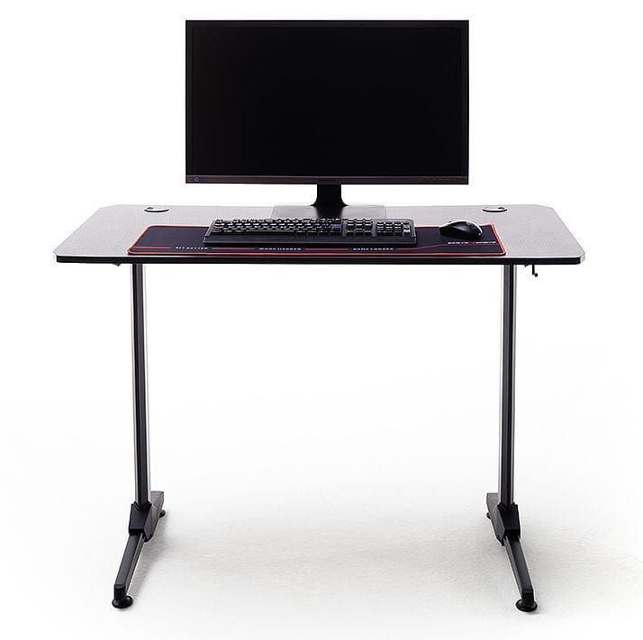 Biurko gamingowe , blat w optyce karbonu , Stelaż T metal lakier proszkowany czarny , podkładka na myszkę ,wieszak na słuchawki ,uchwyt na kubek , uchwyt na kable .