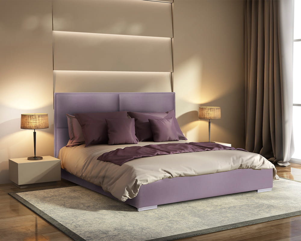 DENVER to ultranowoczesne łóżko, w którym cztery duże panele zamknięte zostały delikatną ramką. Pozwala to na bardzo duże możliwości aranżacji, zmian i zabaw tkaninami przy projektowaniu sypialni.