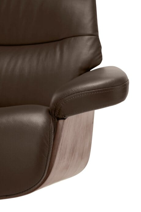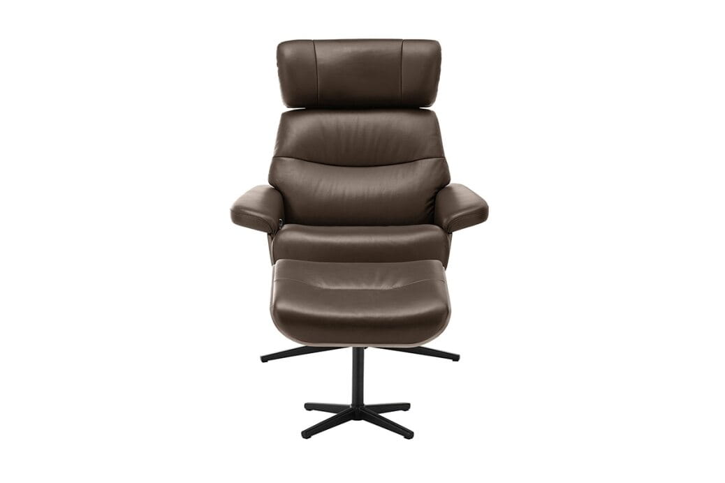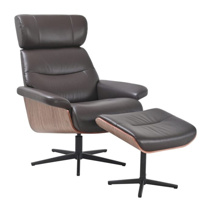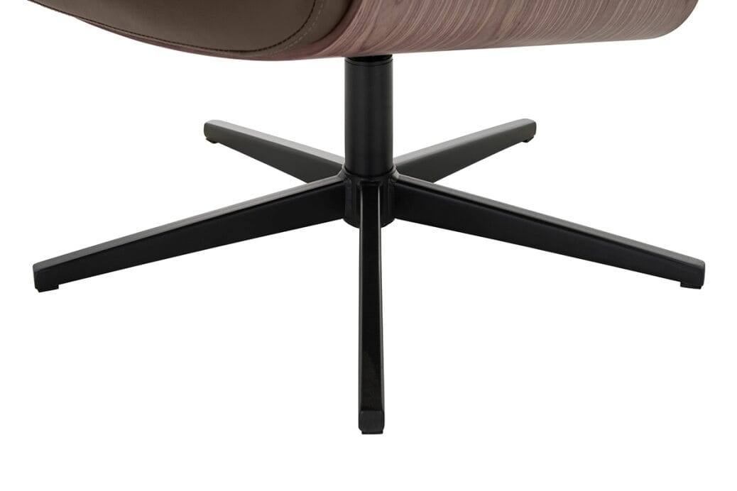 64131BS5 - Fotel relaksacyjny + podnóżek, skóra / ekoskóra brąz / sklejka kolor orzechowy, stelaż metal, lakier proszkowy czarny