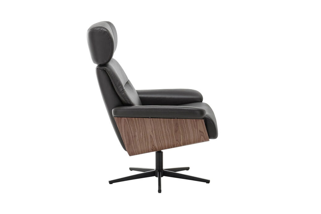 64131SX5 - Fotel relaksacyjny + podnóżek, skóra / ekoskóra czarna / sklejka kolor orzechowy, stelaż metal, lakier proszkowy czarny