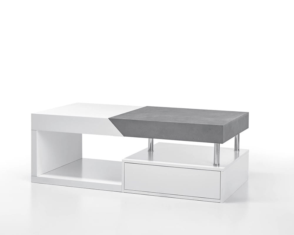 - Wykończenie: MDF optyka beton, lakier biały mat, chrom