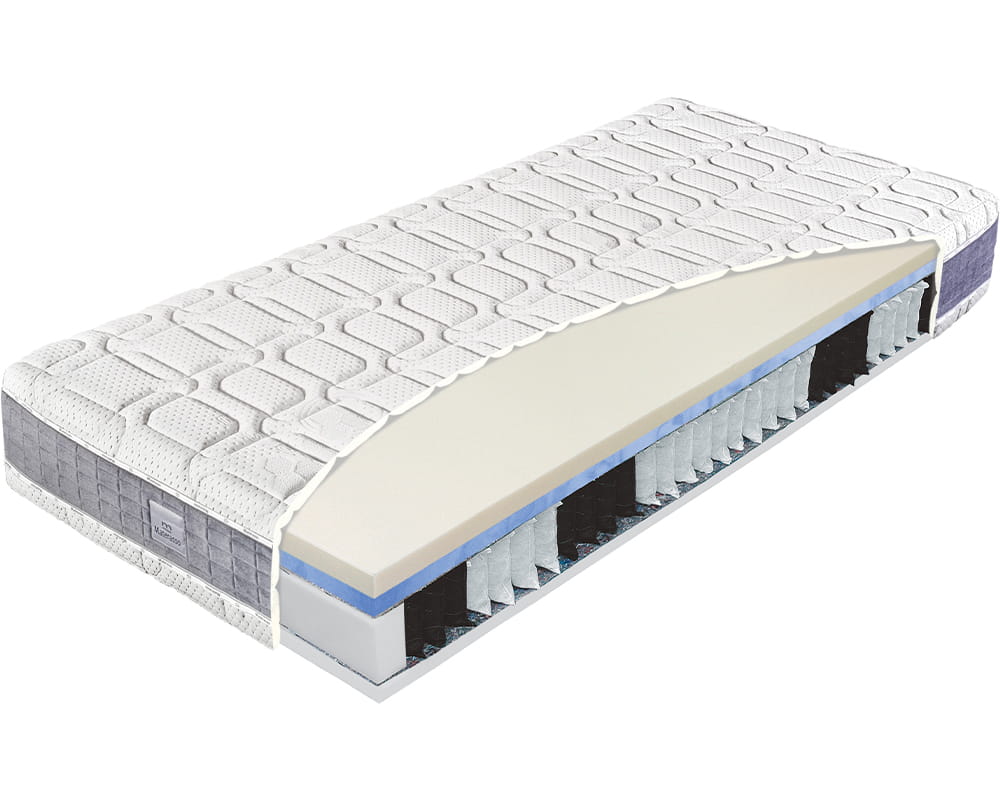 Hybrid Oxygen to dwustronny materac, który składa się z kilku warstw: komfortowo formowanej termoelastycznej pianki, wysokoelastycznej pianki Oxygen, sprężyn kieszonkowych oraz pianki Eliocell. Całość zamyka zdejmowany pokrowiec Algua, pikowany z włóknem klimatyzującym.