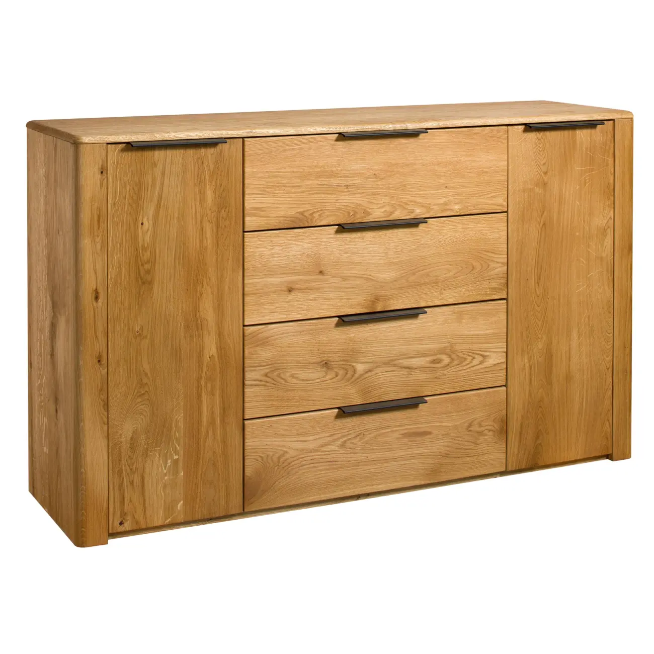 Wysokiej Jakości Materiały: Wykonana z litego drewna dębowego i wykończona naturalnymi materiałami, ta komoda zapewnia trwałość i niezawodność.
