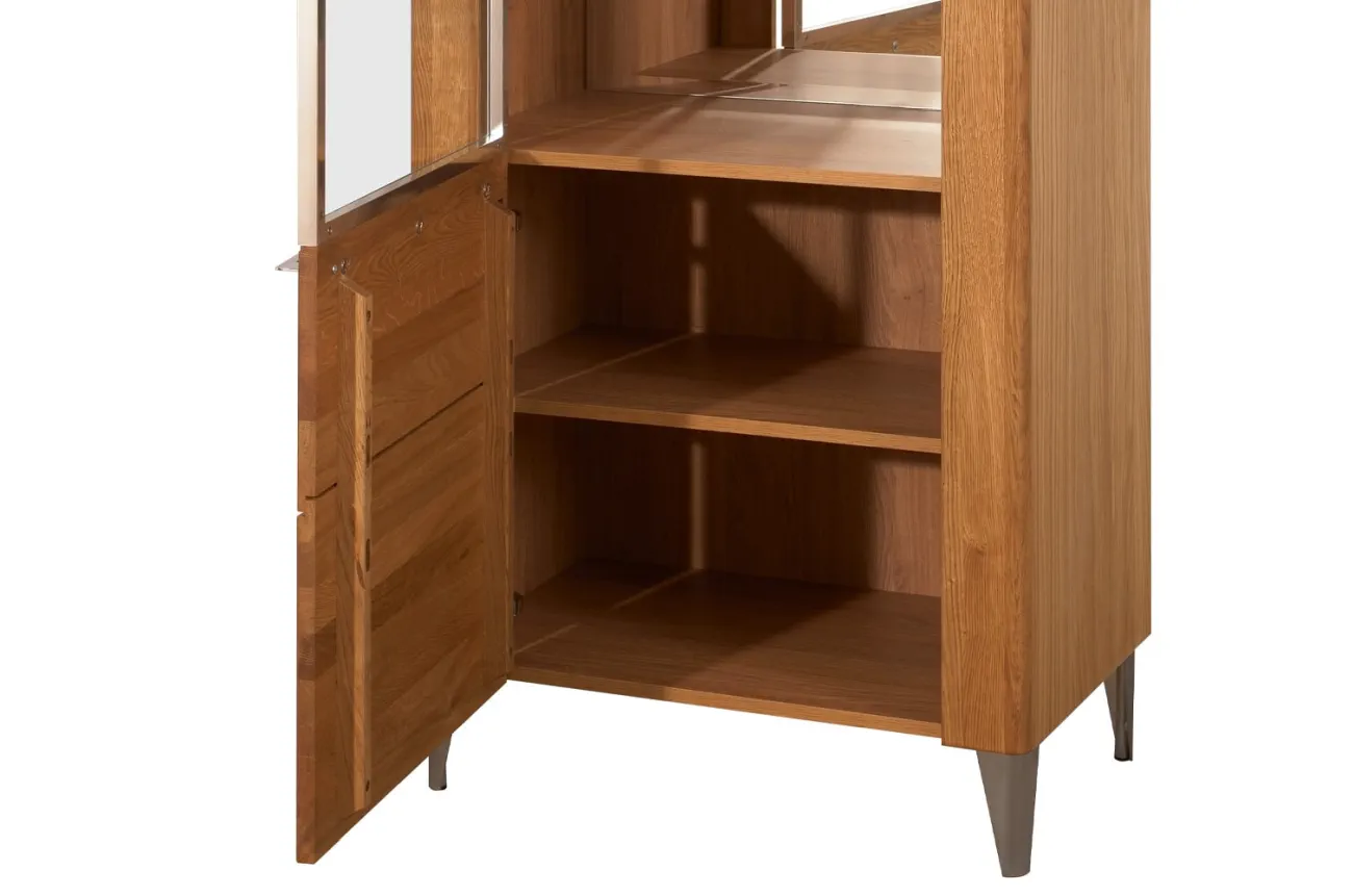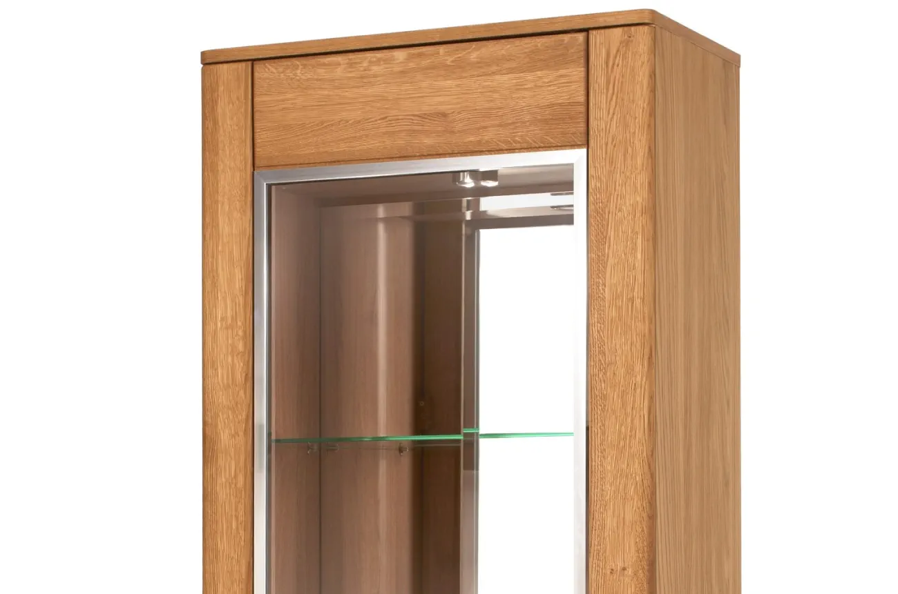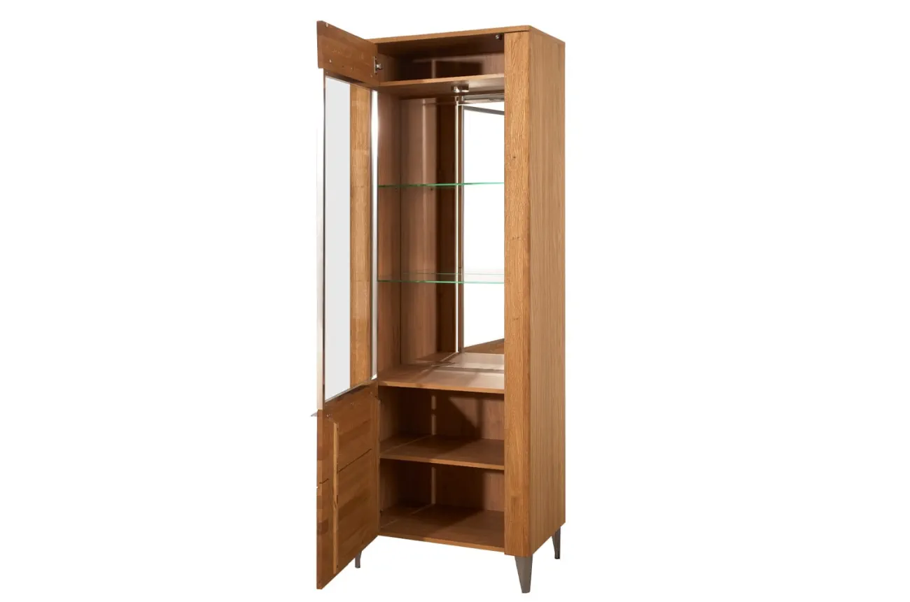 - Wykonanie front: lite drewno dębowe szczotkowane, szkło hartowane - bezbarwne