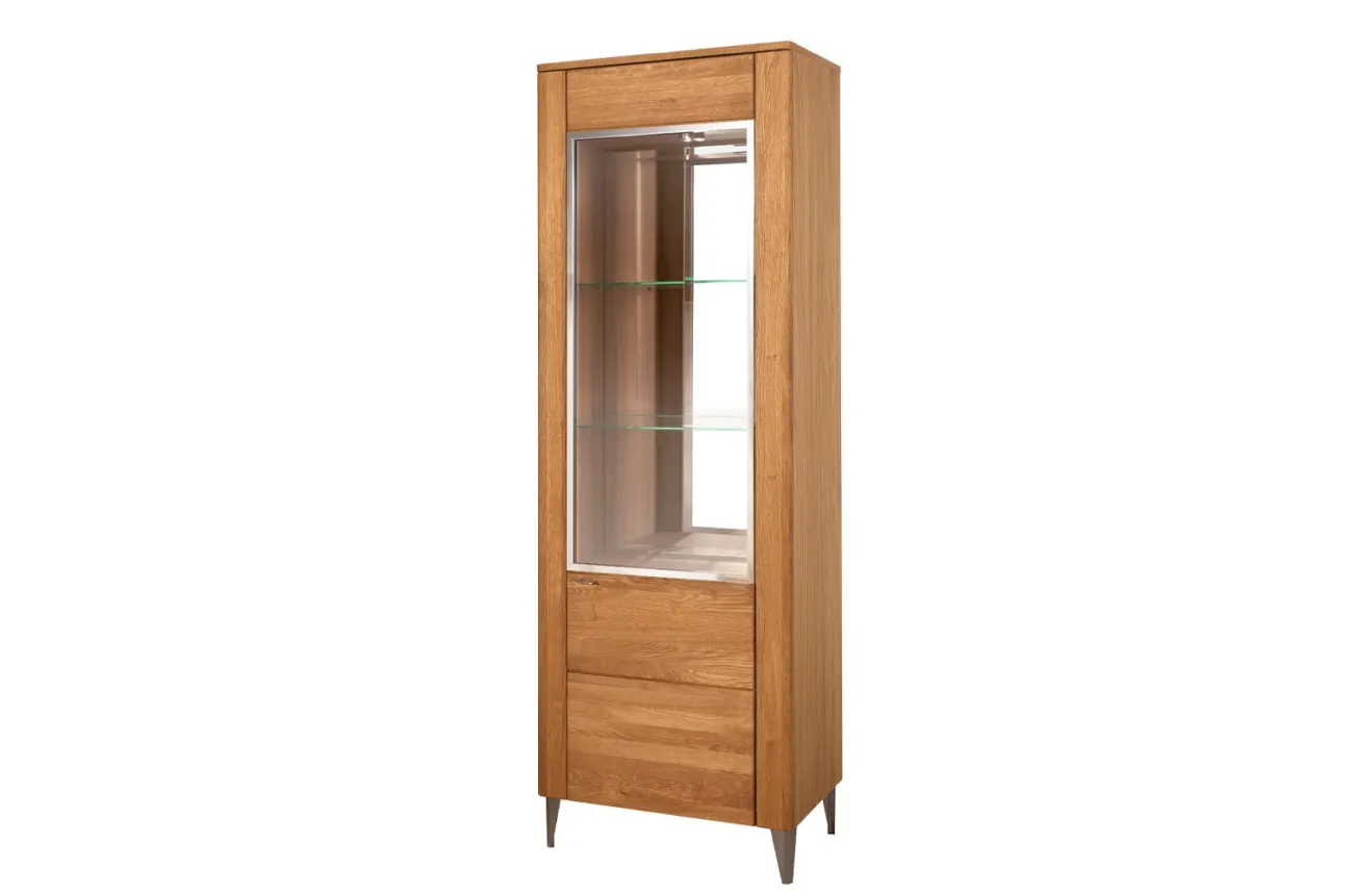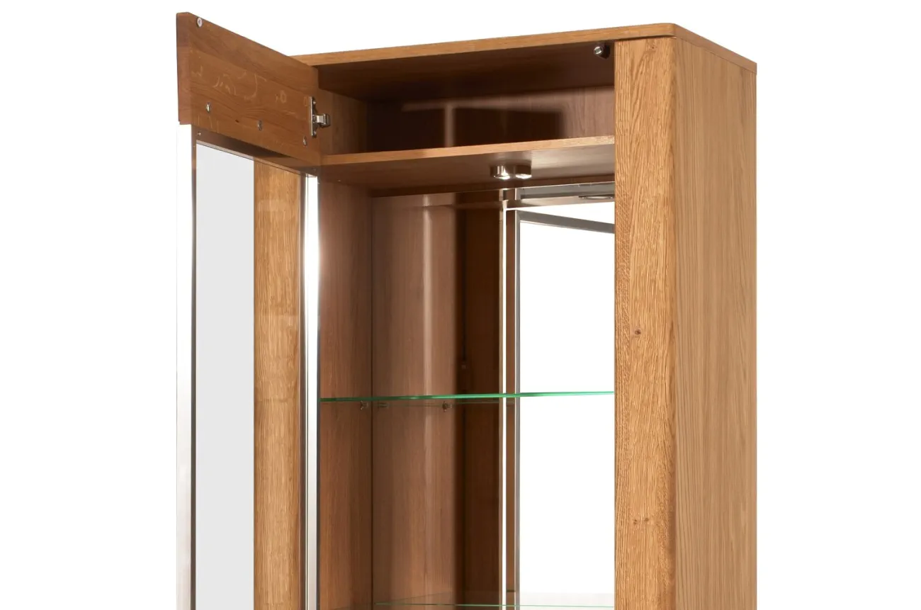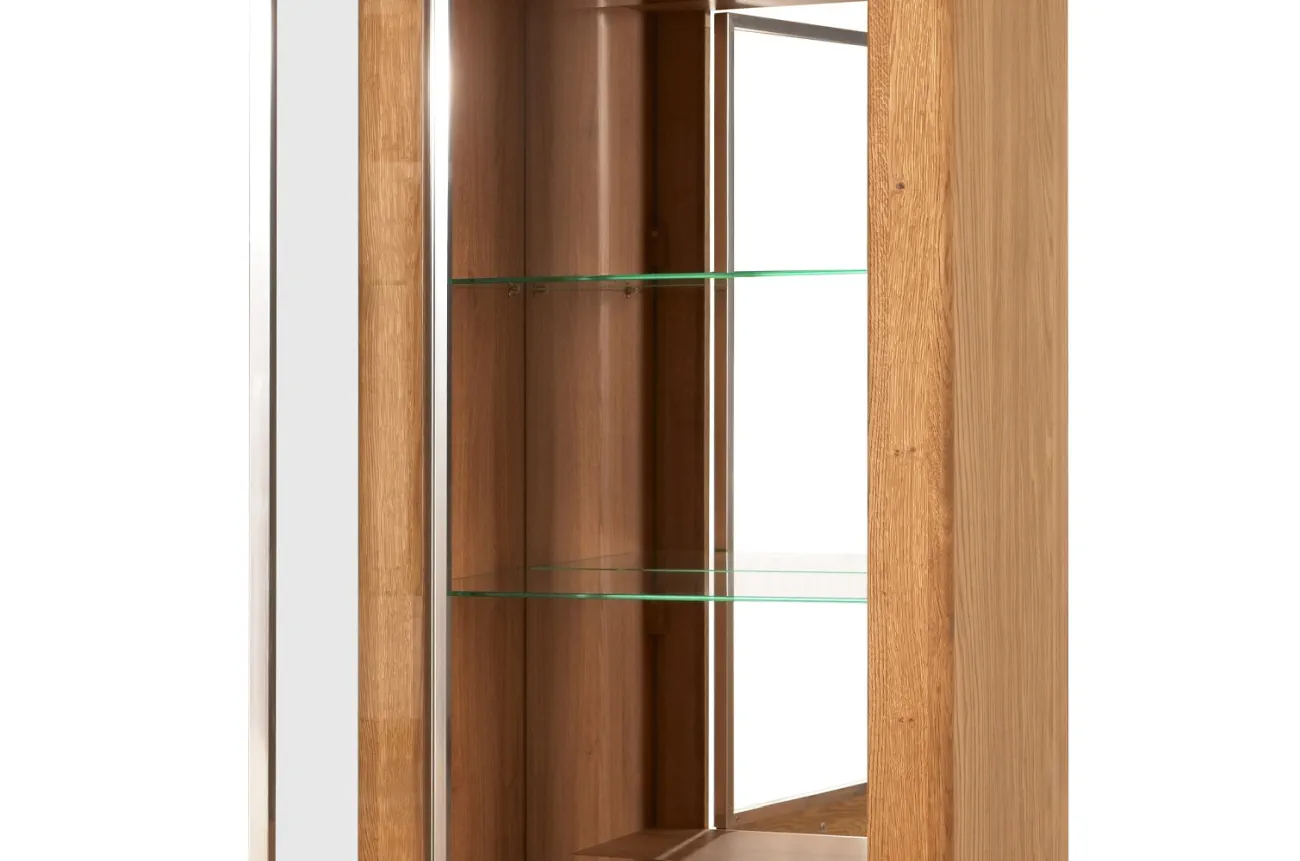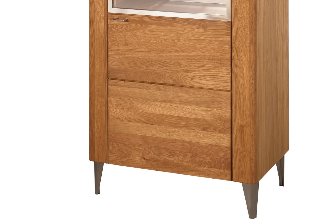 - Wykonanie front: lite drewno dębowe szczotkowane, szkło hartowane - bezbarwne