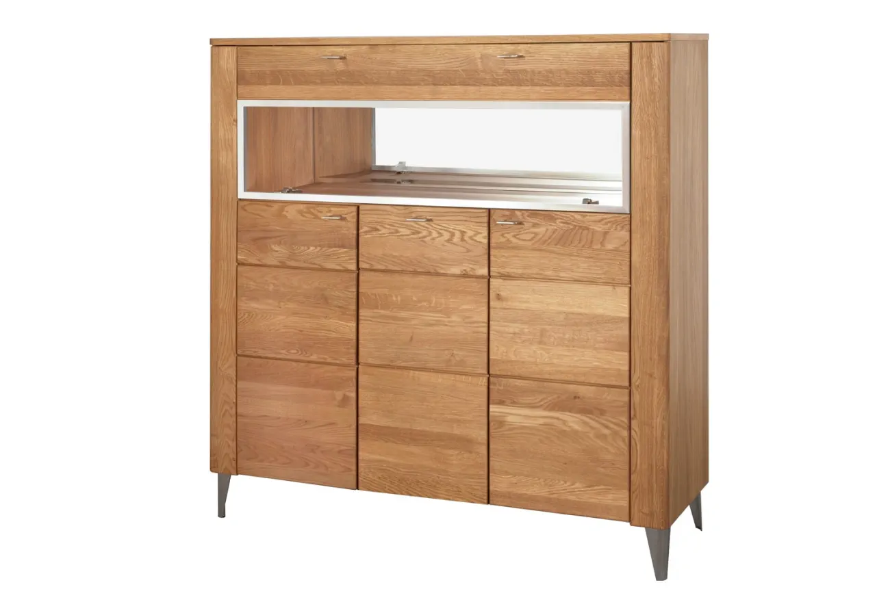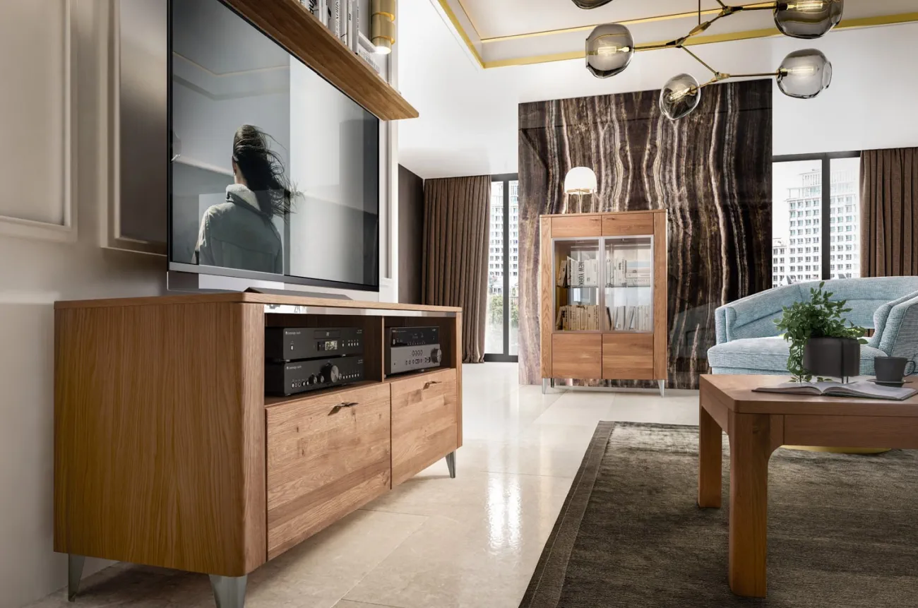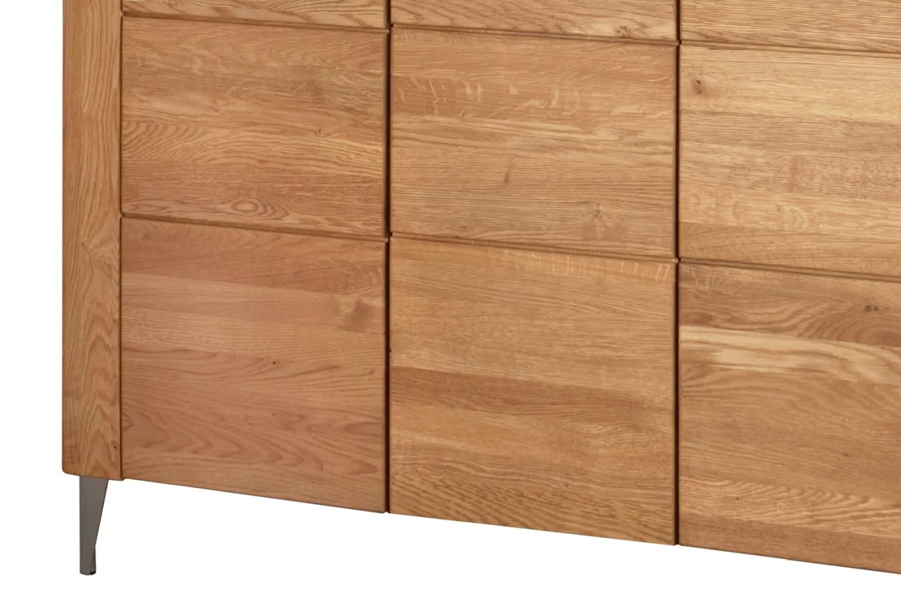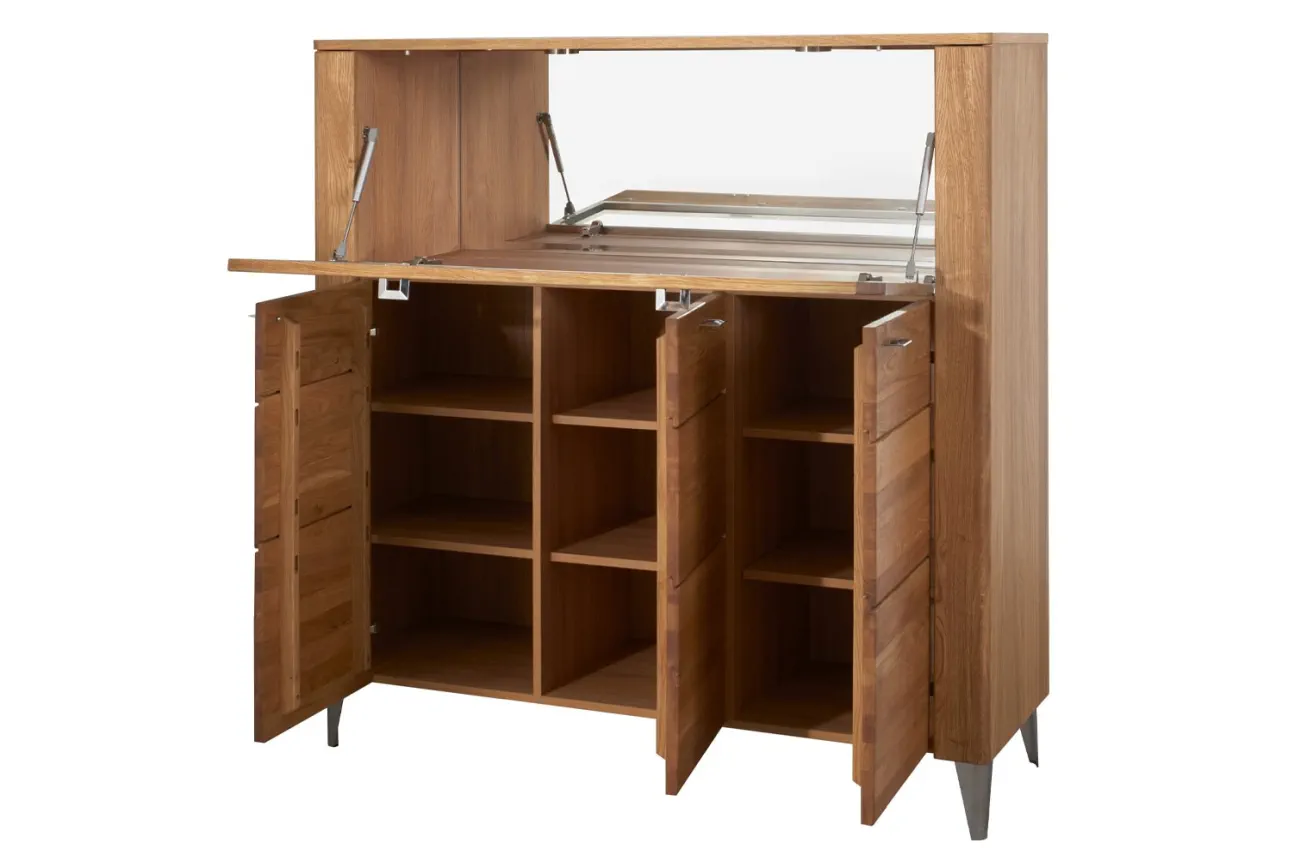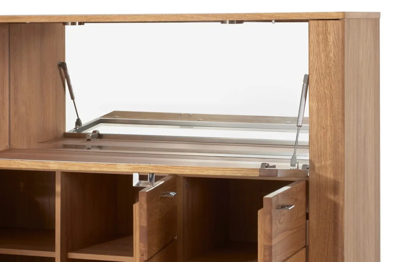 - Wykonanie korpus: zew.: płyta meblowa w naturalnej okleinie dębowej, wew .: płyta meblowa foliowana w dekorze drewnopodobnym