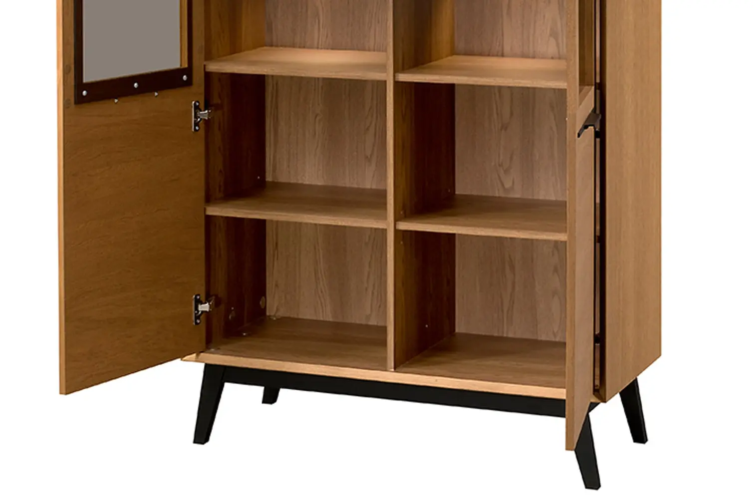 - Wykonanie korpus: zew. płyta meblowa w naturalnej okleinie dębowej; wew. płyta meblowa foliowana, doklejka dąb masyw frezowany