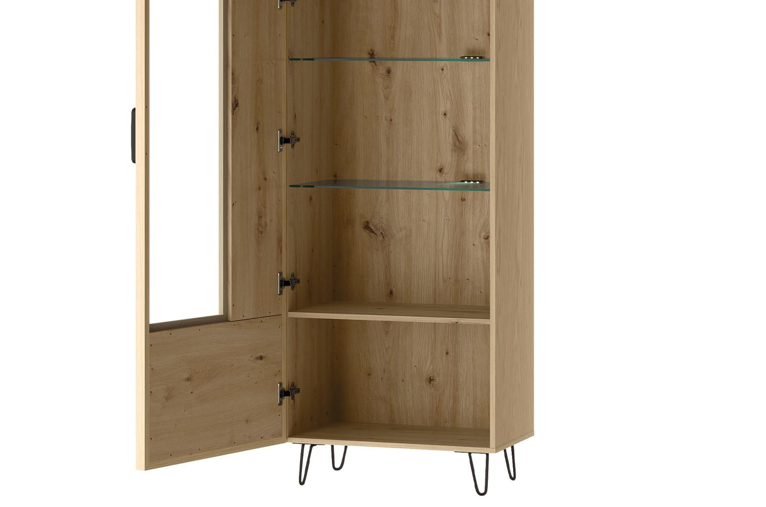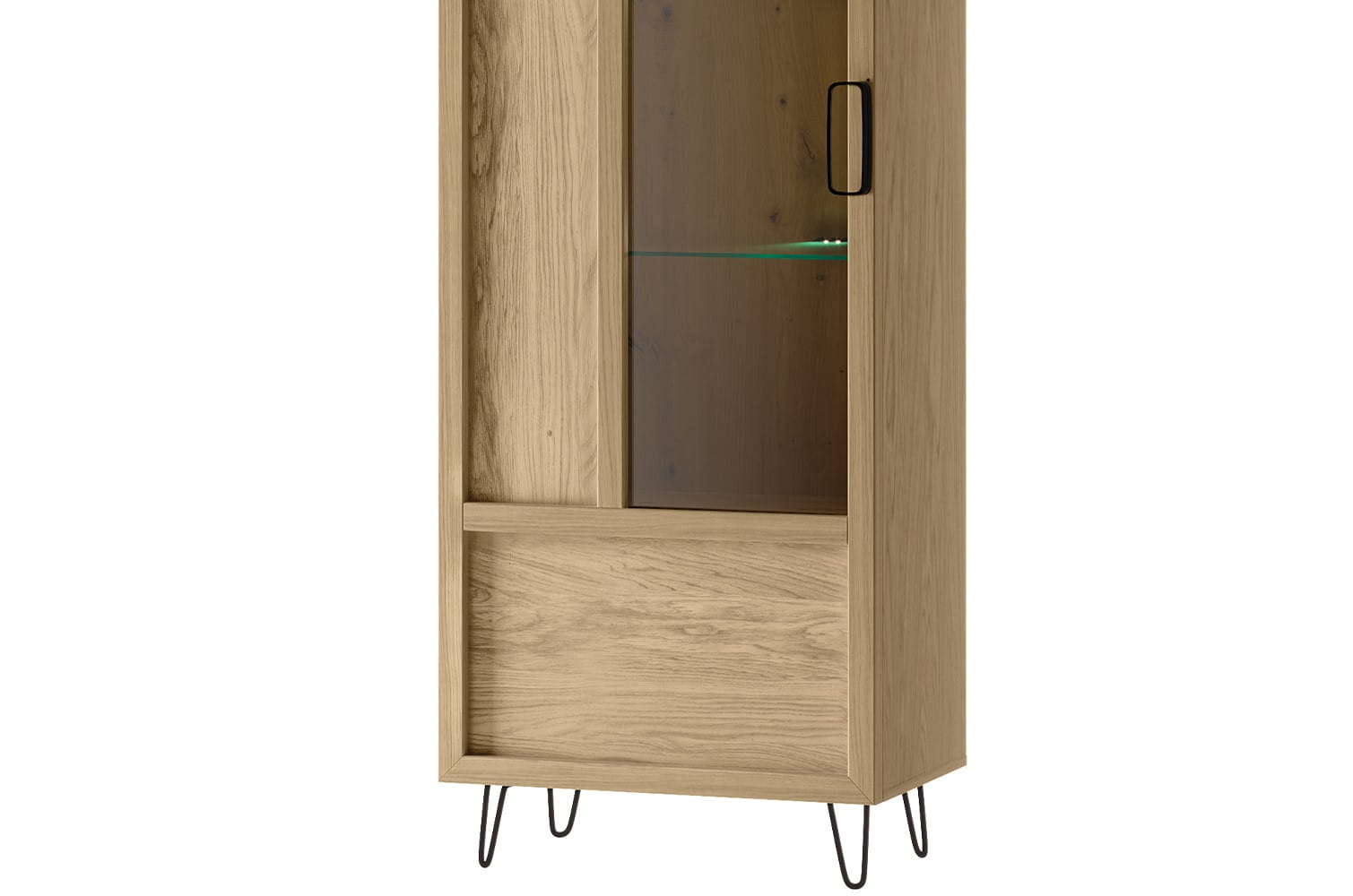 - Wykonanie front: lite drewno dębowe; szkło hartowane - bezbarwne