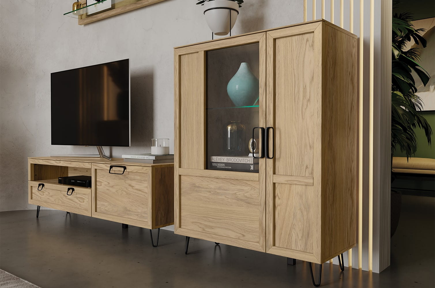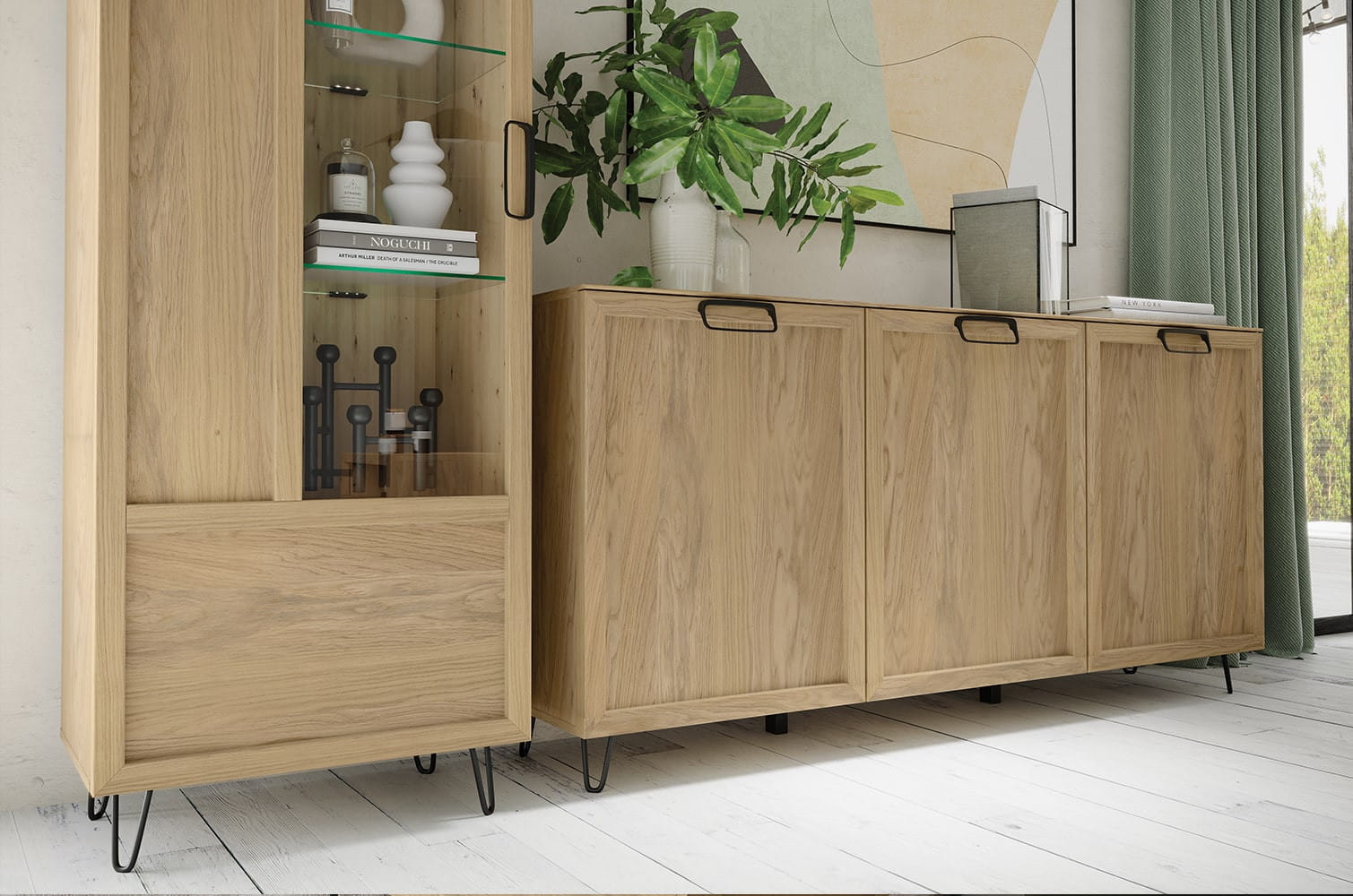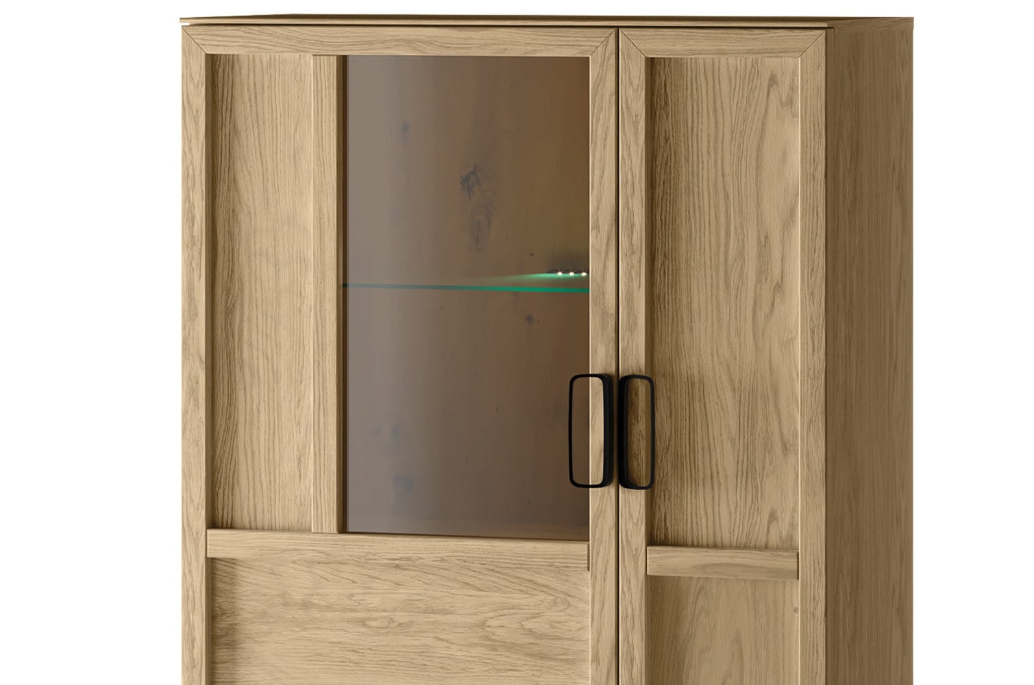 - Wykonanie front: lite drewno dębowe; szkło hartowane - bezbarwne