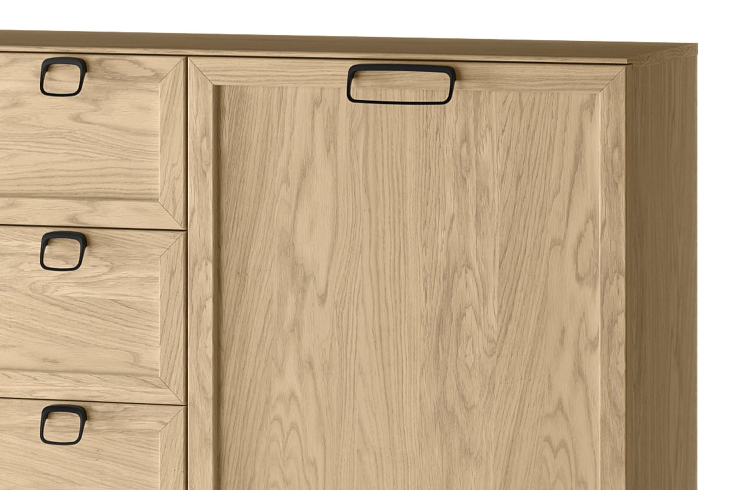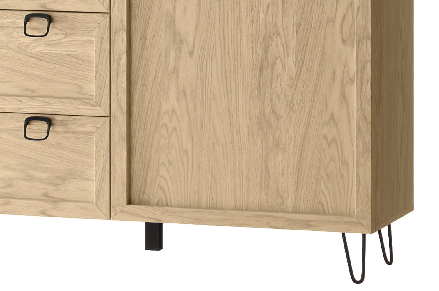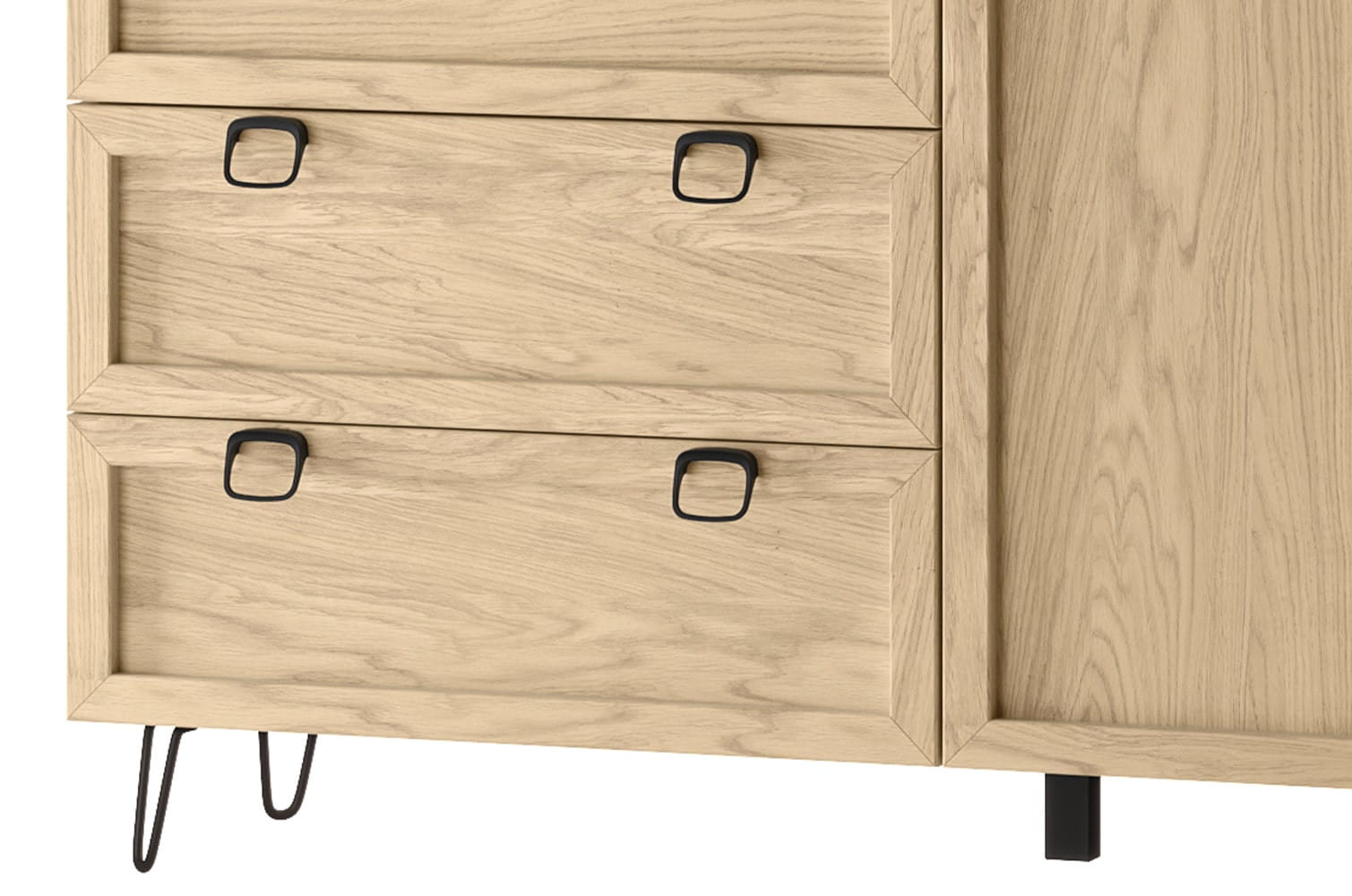 - Wykonanie korpus: zew. płyta meblowa w naturalnej okleinie dębowej; wew. płyta meblowa foliowana