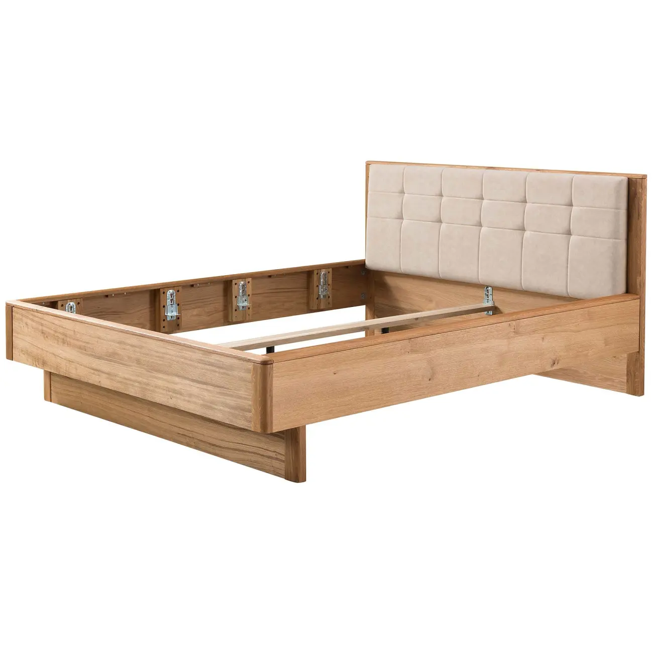 - Front łóżka tworzy masyw dąb sękaty deska, a wykończenie olejem natura podkreśla jego naturalne piękno.