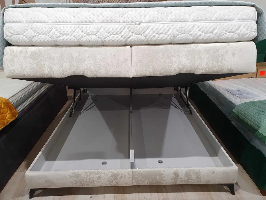 pojemnik na pościel pod całą powierzchnią łóżka otwierany bez wysiłku dzięki siłownikom gazowym.