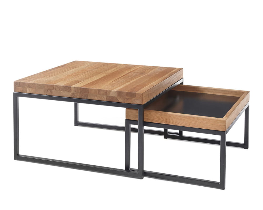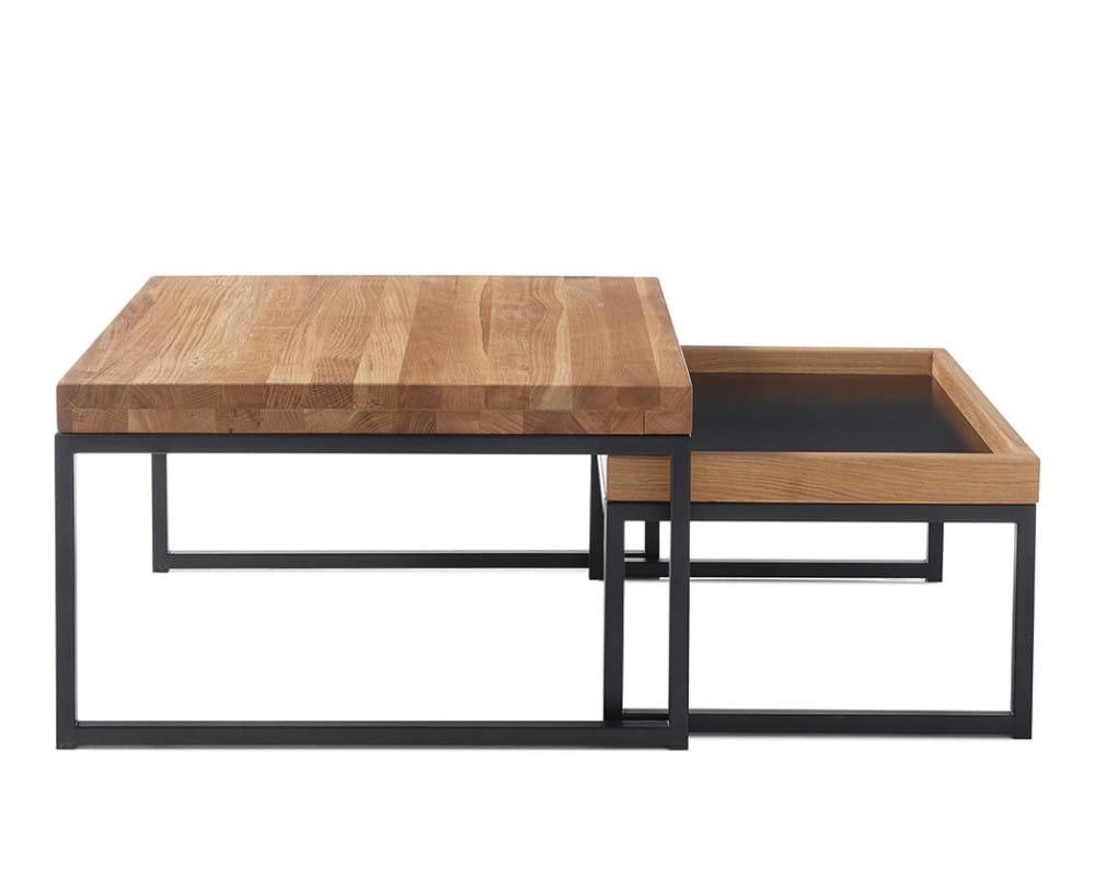 | Blat | drewno dębowe sękate (olejowane) / płyta MDF (czarny) |