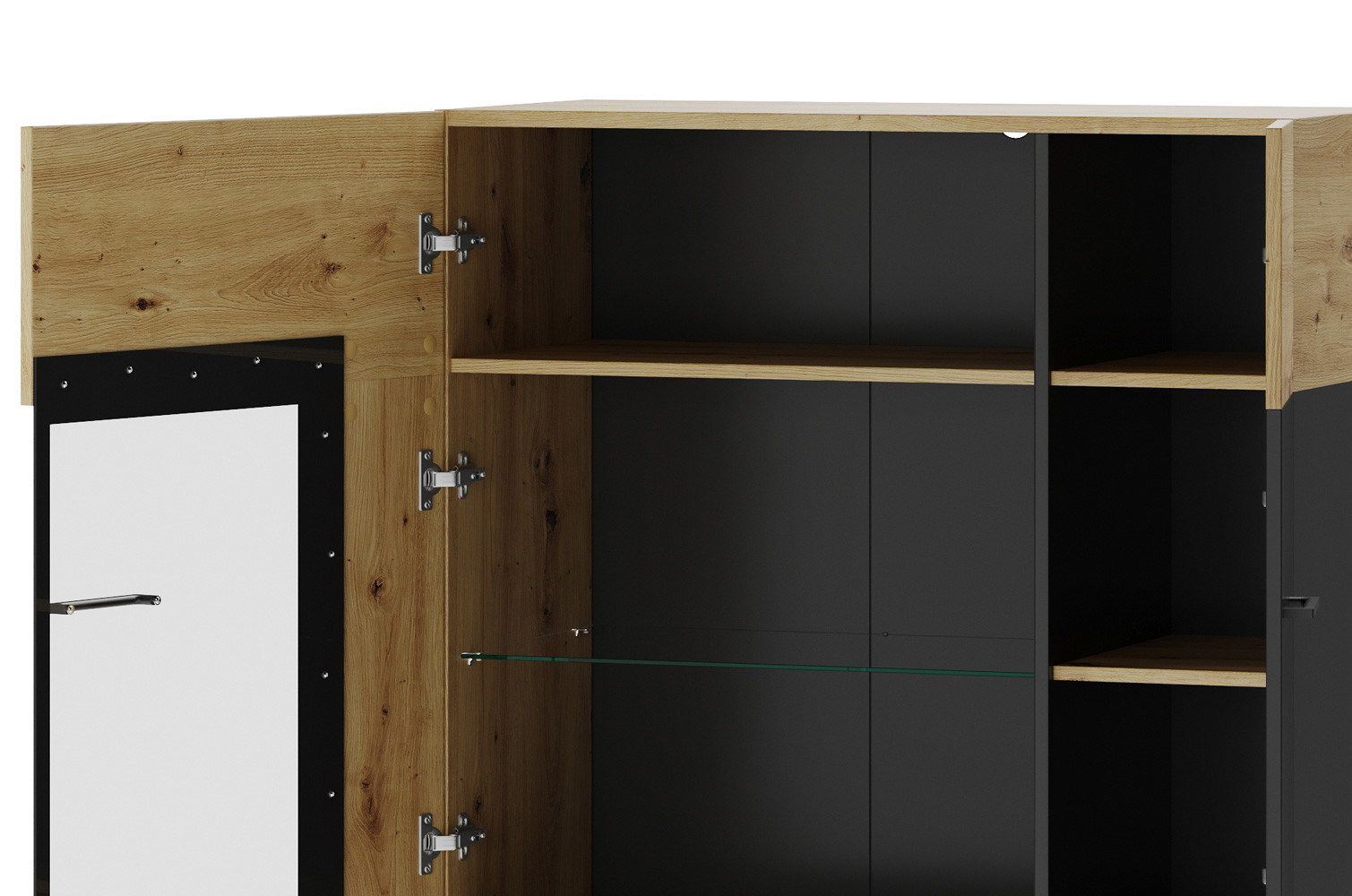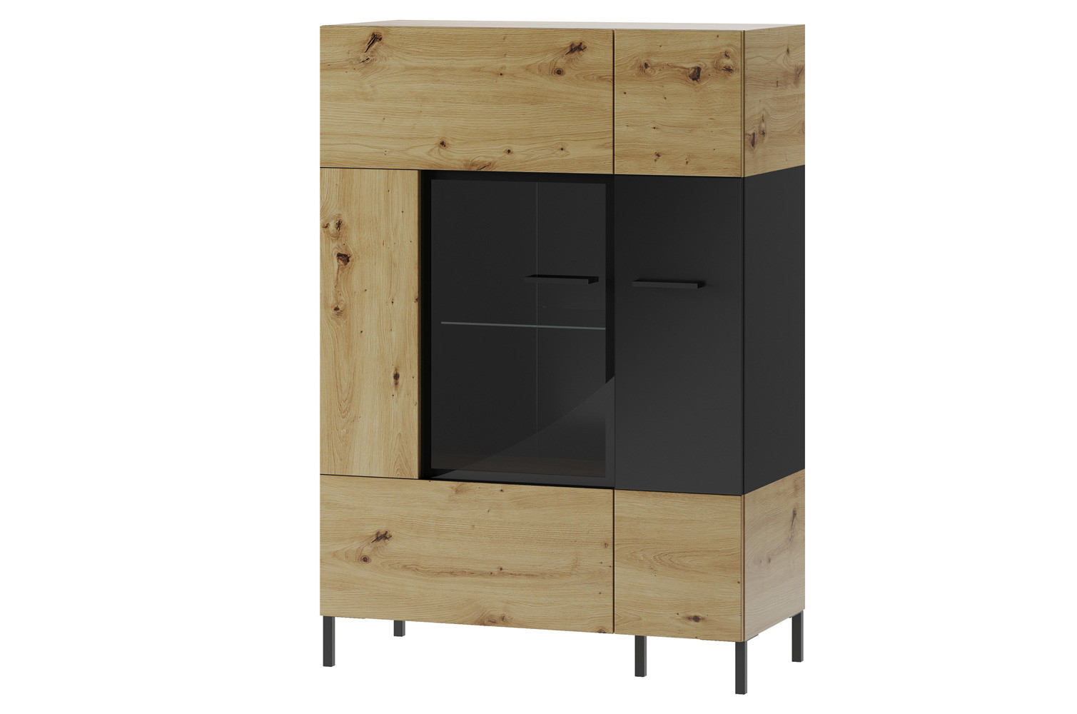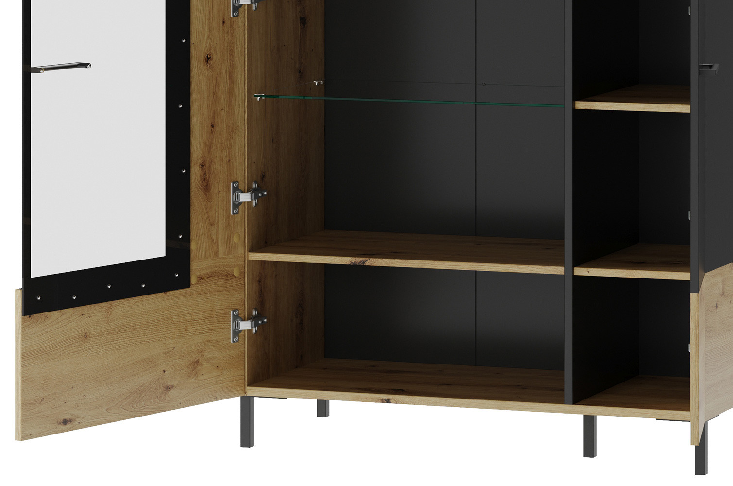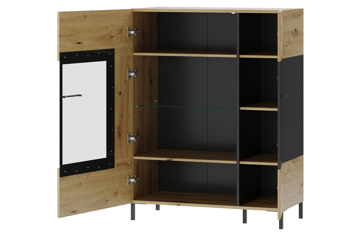 - Kolorystyka: dąb artisan z elementami czarny mat
