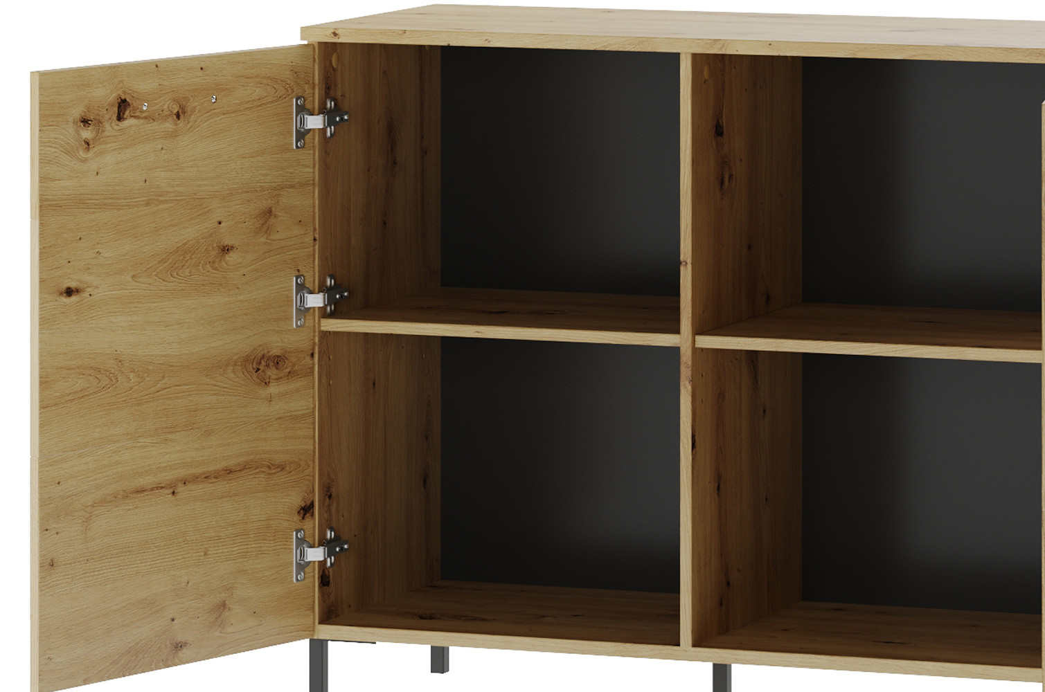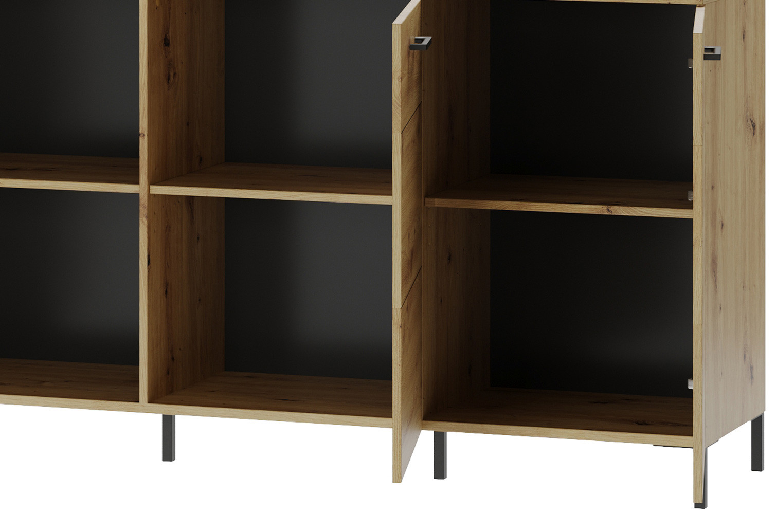 - Kolorystyka: dąb artisan z elementami czarny mat