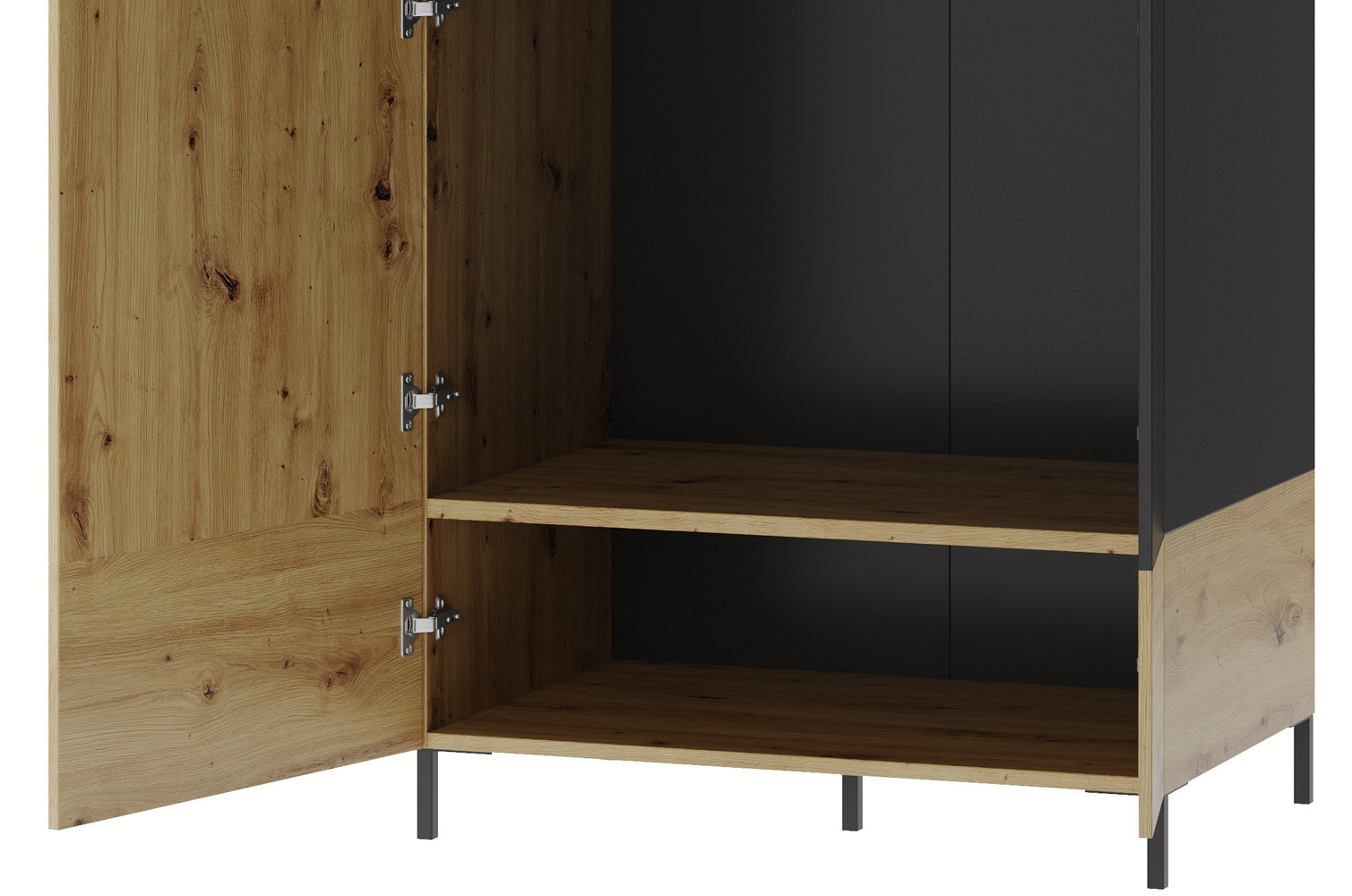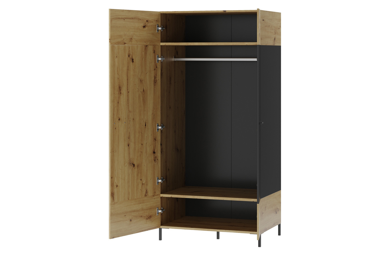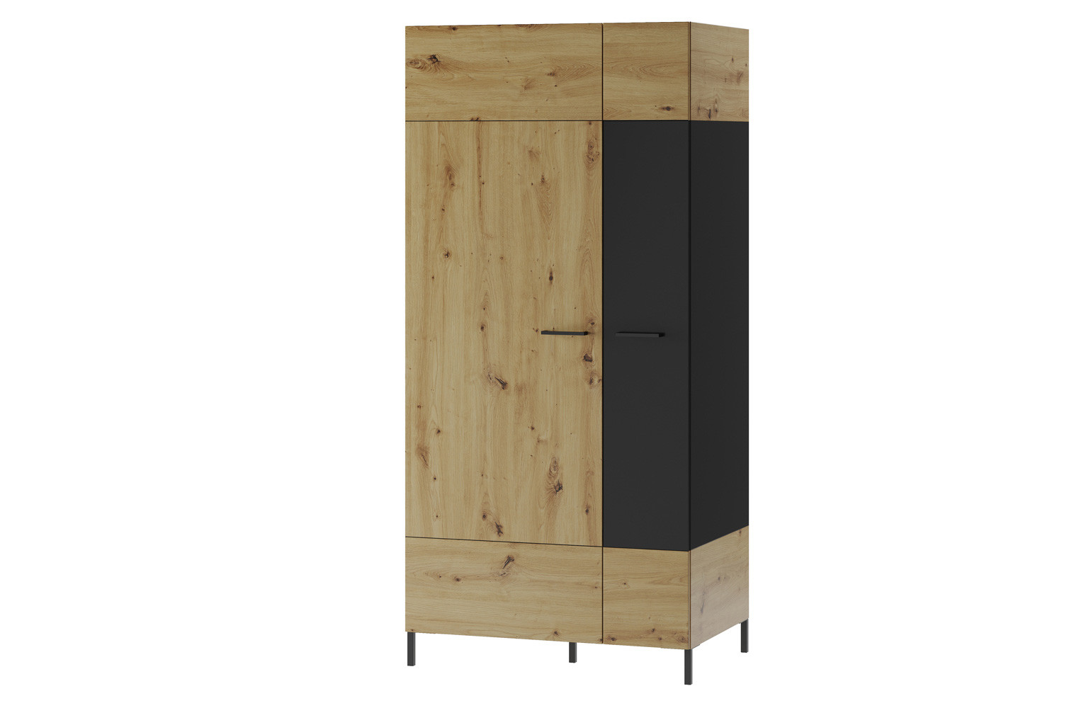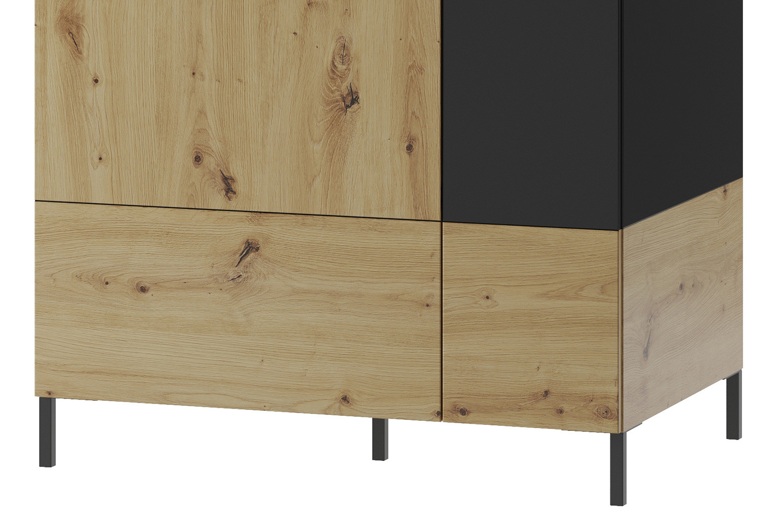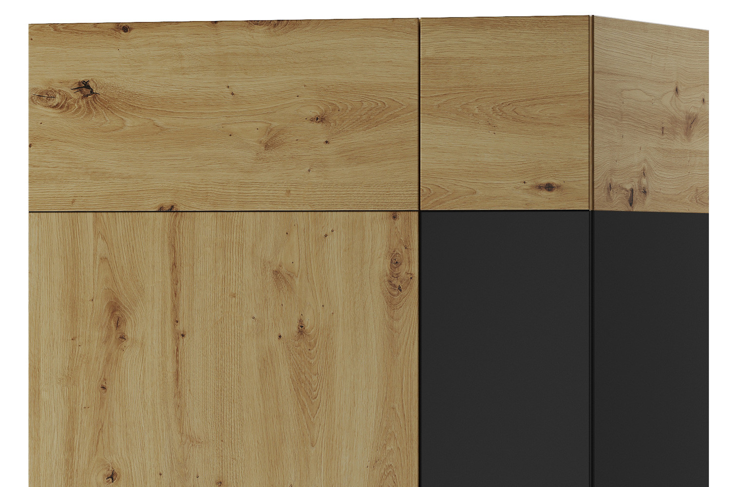 - Kolorystyka: dąb artisan z elementami czarny mat
