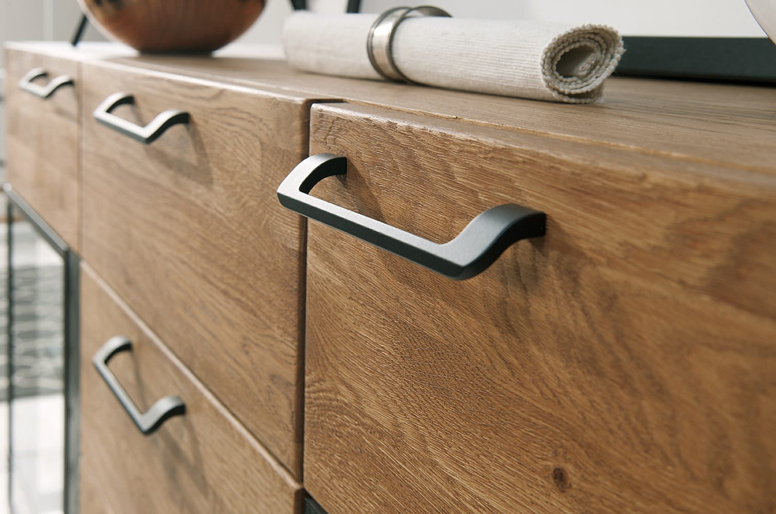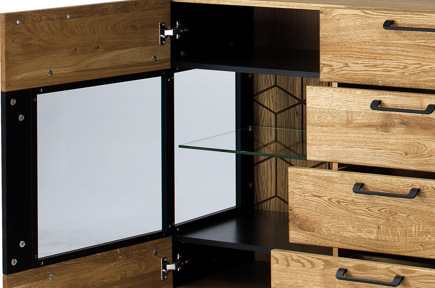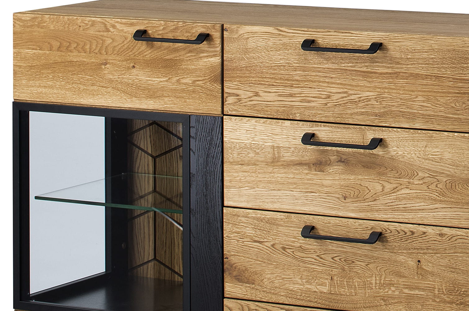 - Kolorystyka: dąb miodowy z elementami czarny mat