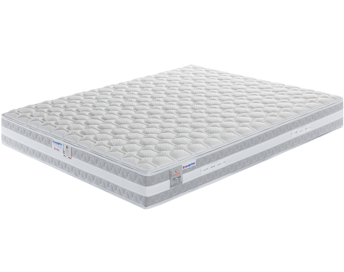 Wierzchnia warstwa materaca zawiera pianę PoliSoff, która delikatnie otula ciało dając poczucie wyjątkowej miękkości oraz niezwykłego komfortu. Opatentowana, zaawansowana technologicznie piana Memory iFresh, umieszczona w drugiej warstwie pokrowca materaca absorbuje ciepło ludzkiego ciała, utrzymując komfort termiczny podczas snu. Piana Memory iFresh skutecznie stabilizuje mikroklimat snu, jednocześnie zapewniając idealne dopasowanie do sylwetki i redukcję punktów nacisku.