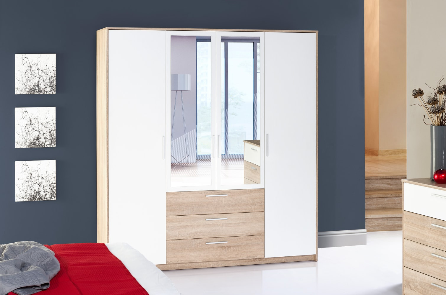 szafa 4-drzwiowa z 3 szufladami (1 część bieliźniarka)