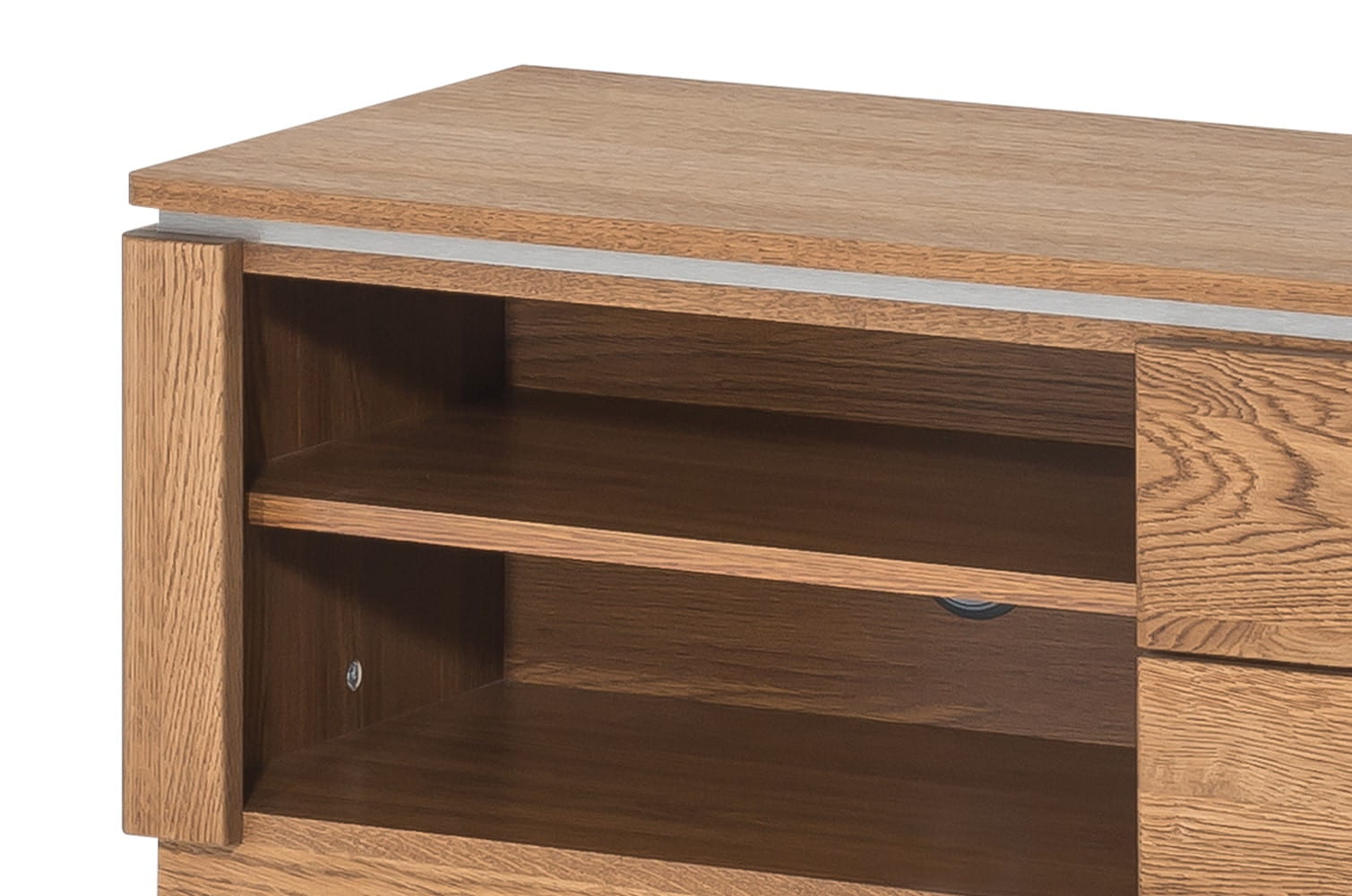 - Kolorystyka: dąb rustical z elementami stali szczotkowanej