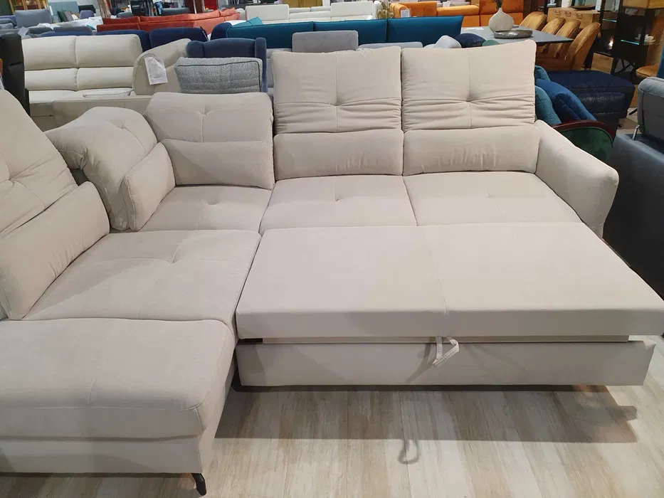 regulacja kąta nachylenia podłokietnika, udoskonalona funkcja spania (typ delfin), dwa pojemniki na pościel,