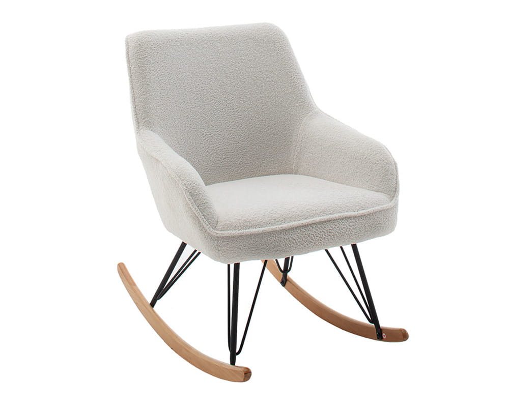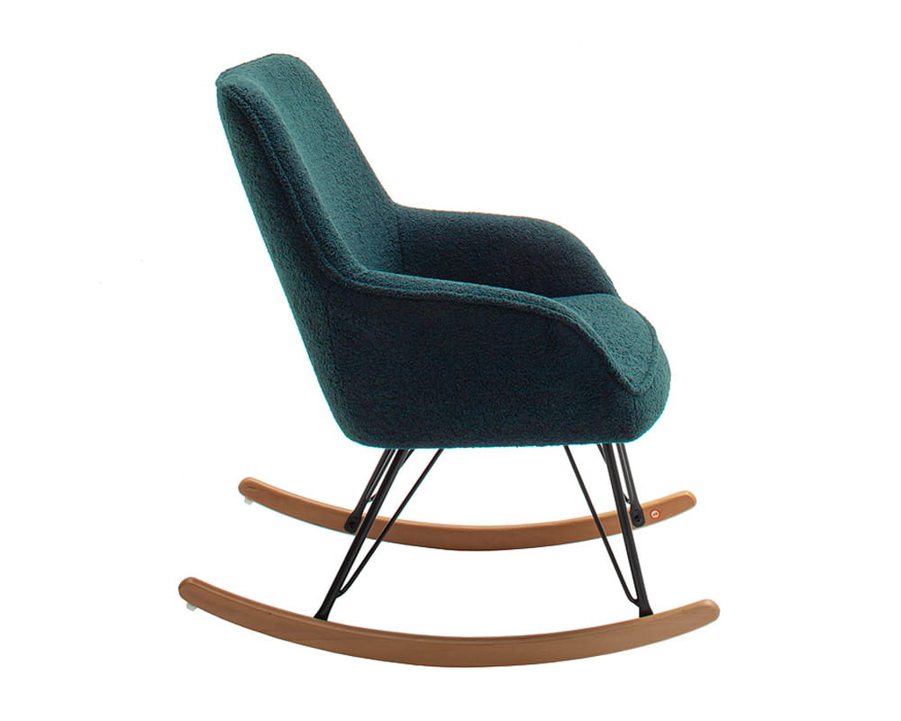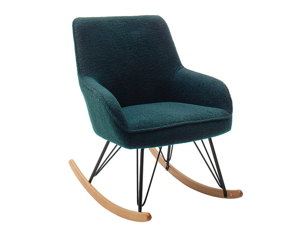 Prezentowany model z pierwszej miniatury to fotel bujany wykończony oliwkową tkaniną.