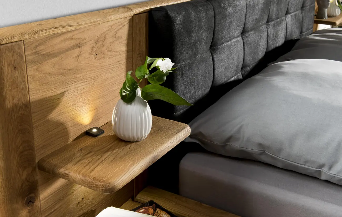 Solidny panel z kolekcji Denver mocowany do ramy łóżko to doskonały i niezwykle funkcjonalny dodatek wyposażenia sypialni. Charakteryzuje się ciekawą formą i ponadczasowym designem. Co więcej stylowe i nowoczesne panele ścienne wyprodukowane zostały z najlepszej klasy litego dębu, świetnie dostosują się do każdej aranżacji panującej w sypialni. Dodatkowo mocna konstrukcja oraz eleganckie, nowoczesne wykończenie sprawią, że panel w doskonały sposób uatrakcyjni każde wnętrze. Co więcej panel do łóżka drewniany Denver typ 35/36 posiada praktyczną półkę, na której znakomicie odnajdzie się lampka nocna czy szklanka wody lub książka czytana przed snem.