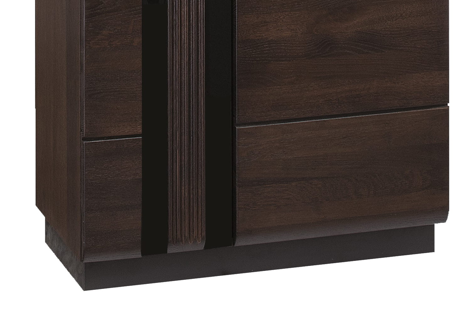 Zestawienie koloru „dębu czekoladowego” z głęboką czernią sprawia, że witryna z kolekcji Porti prezentuje się niebanalnie i elegancko. To doskonałe uzupełnienie zarówno klasycznych pomieszczeń, jak i wnętrz o wyrazistym charakterze. Za sprawą użytecznej formy bez trudu można w niej schować wiele rzeczy, a jednocześnie wyeksponować modne dodatki. Front witryny wykonano z litego drewna, co dodatkowo podkreśla jej elegancję. Ryflowane elementy ozdobne w sąsiedztwie klasycznej czerni doskonale wpasowują się w aktualne trendy. Metalowe wykończenia uzupełniają całość. Witryna z kolekcji Porti świetnie sprawdzi się zarówno z salonie, jak i jadalni. Charakterystyka: front wykonany z litego drewna i szkła hartowanego w kolorze czarnym ryflowane elementy ozdobne metalowe uchwyty