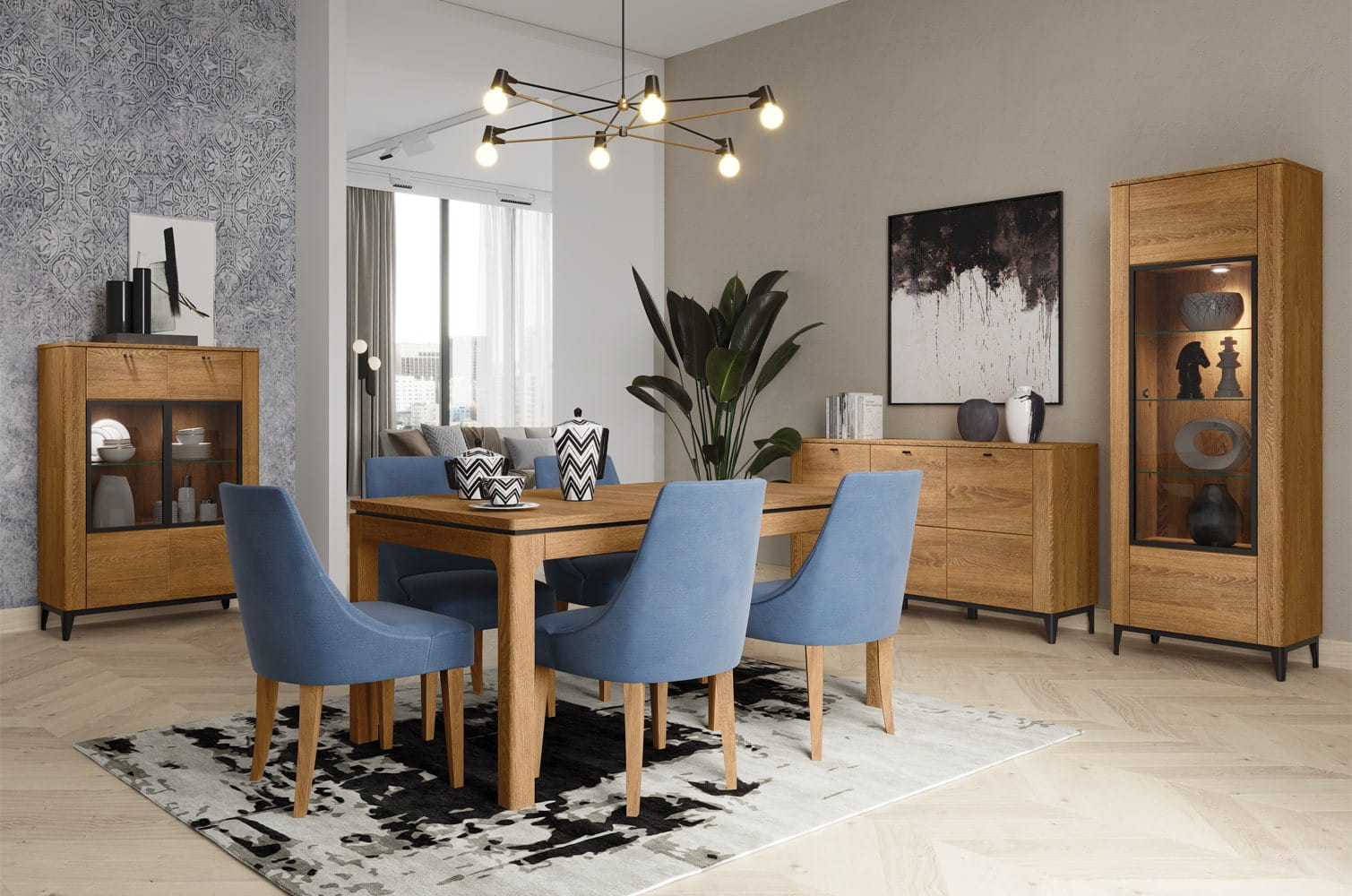- Kolorystyka: korpus: olejowany dąb złoty + czarny mat