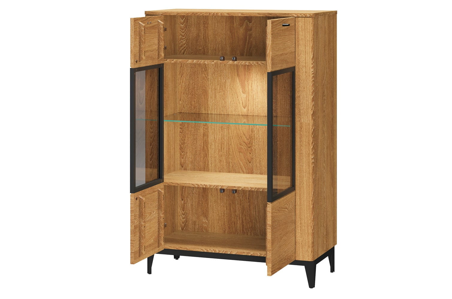 - Kolorystyka: korpus: olejowany dąb złoty + czarny mat