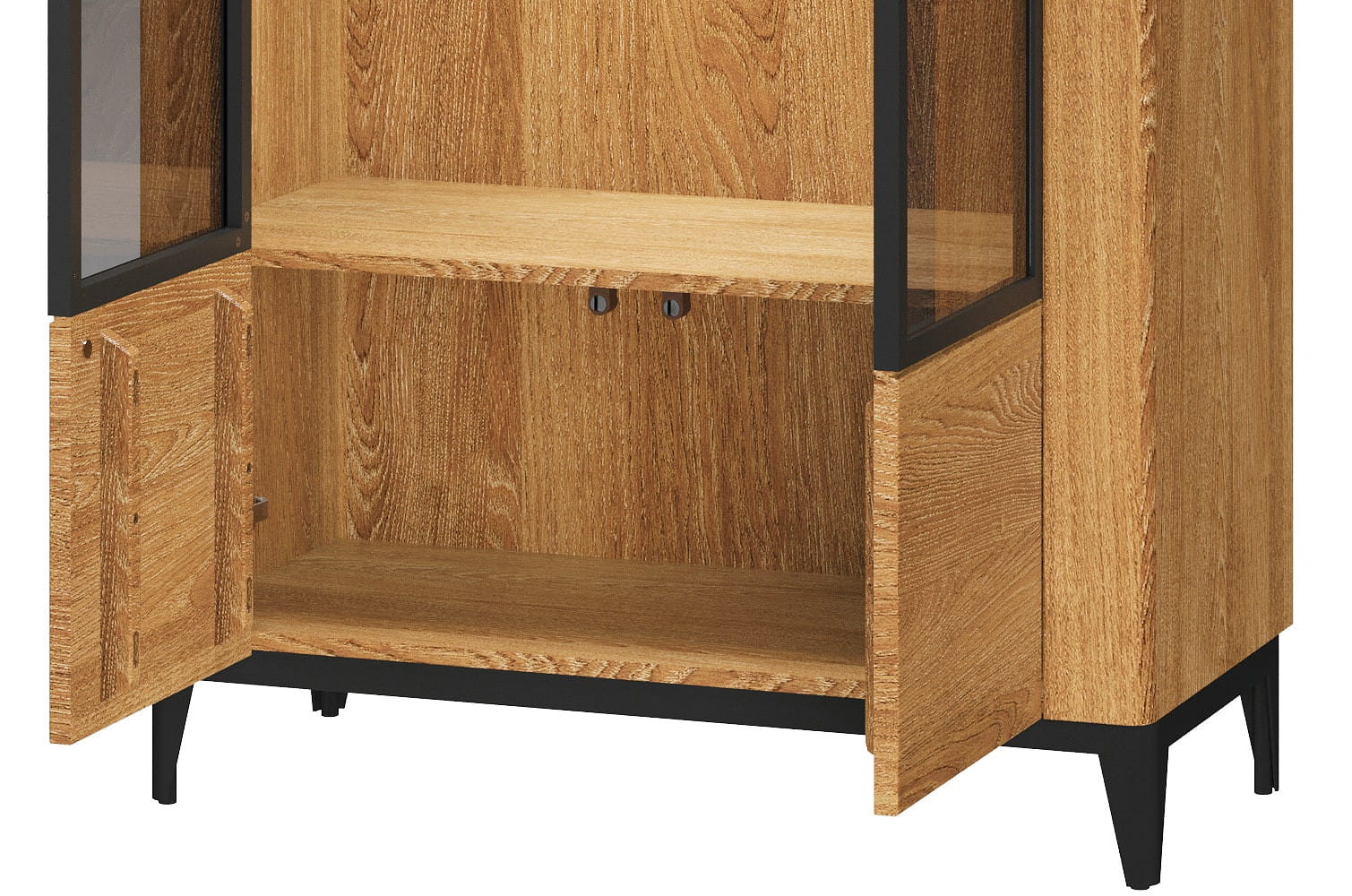 - Wykonanie korpus: zew.: płyta meblowa w naturalnej okleinie dębowej, wew.: płyta meblowa foliowana w dekorze drewnopodobnym