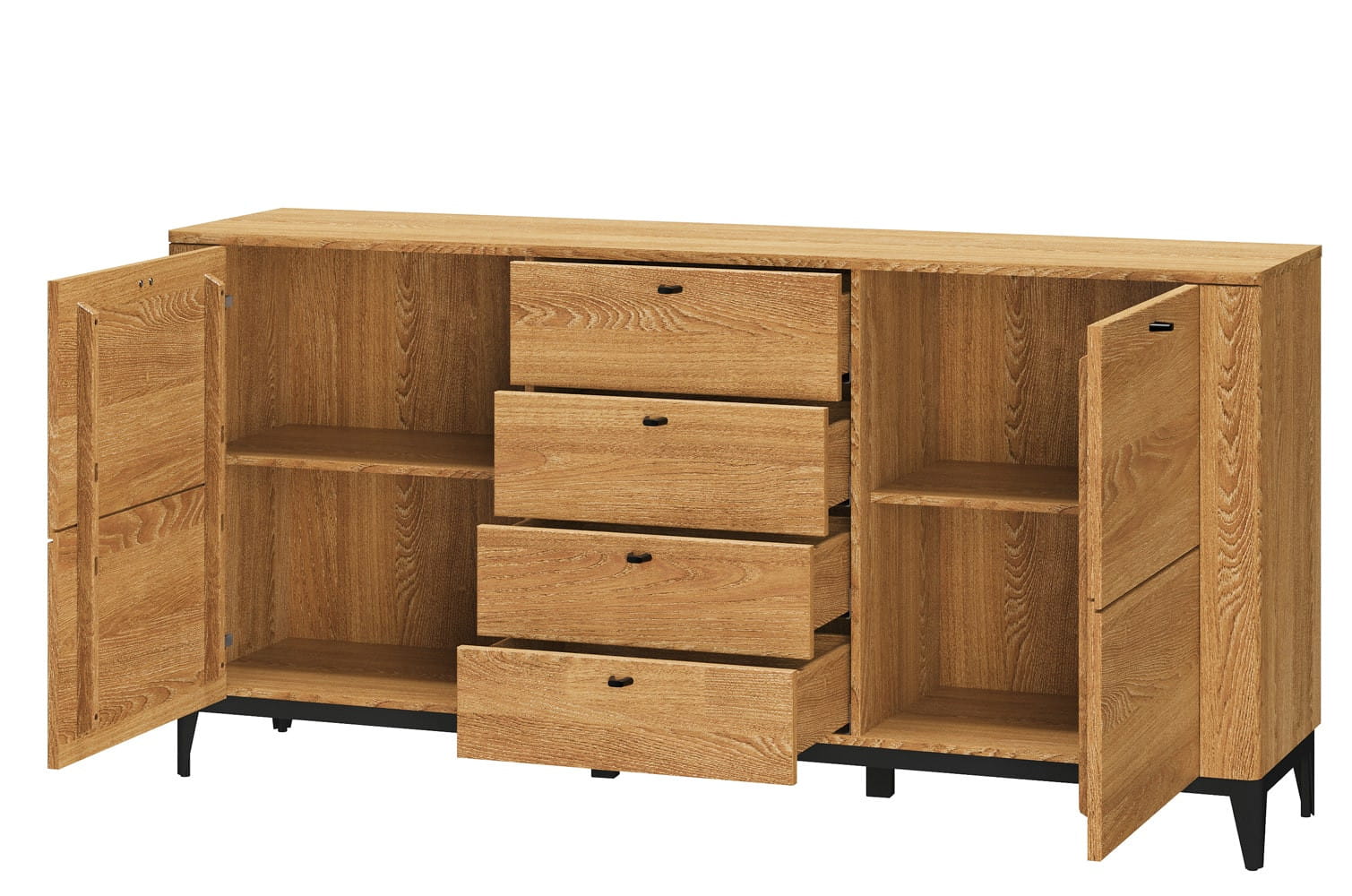 - Wykonanie korpus: zew.: płyta meblowa w naturalnej okleinie dębowej, wew.: płyta meblowa foliowana w dekorze drewnopodobnym