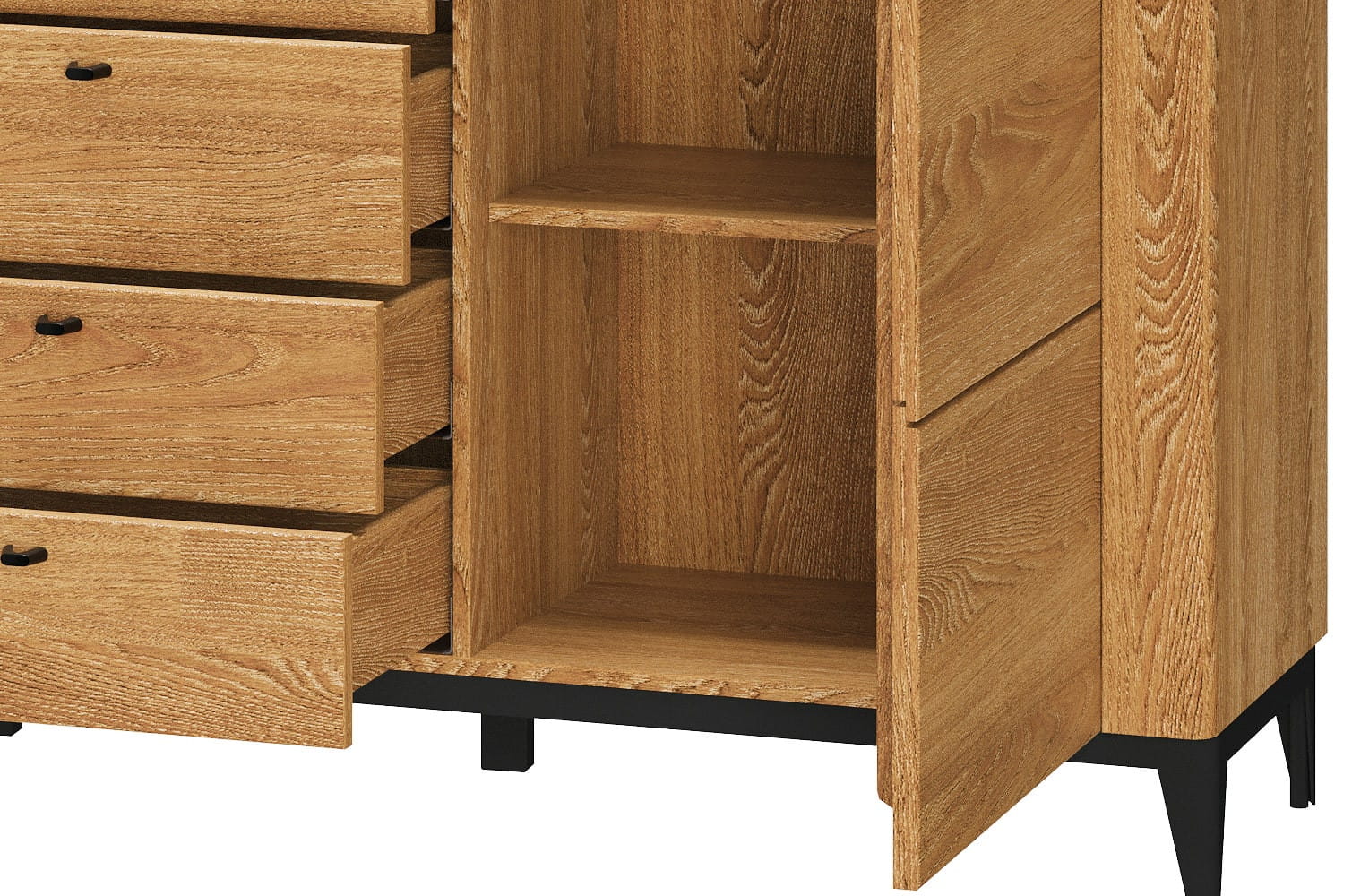 - Kolorystyka: korpus: olejowany dąb złoty + czarny mat