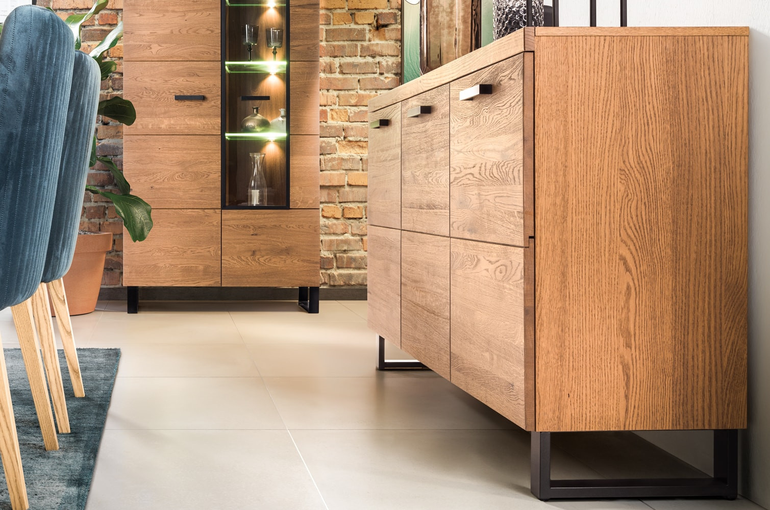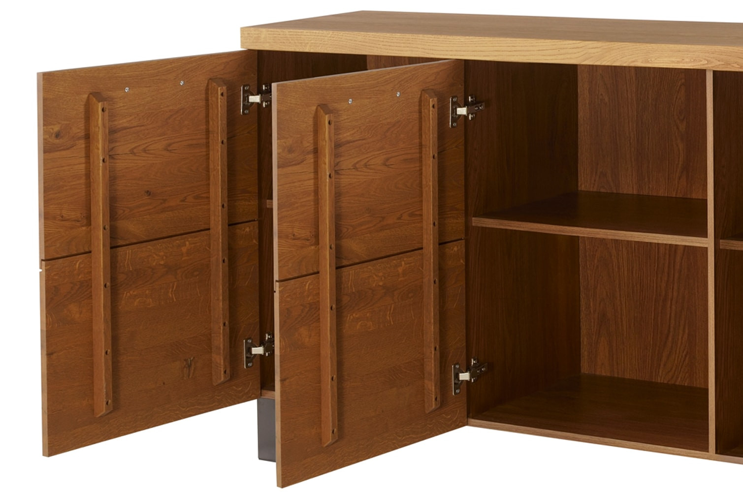 - Wykonanie korpus: płyta meblowa w naturalnej okleinie dębowej, wew.: płyta meblowa w dekorze drewnopodobnym