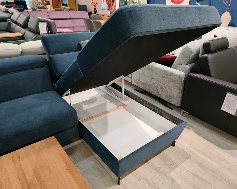 Zapomnij o marnowaniu cennej przestrzeni, dzięki wbudowanemu pojemnikowi na pościel. Praktyczność w parze z wygodą.