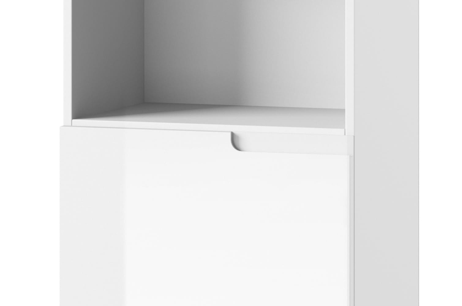 Regał jednodrzwiowy z kolekcji Selene to propozycja dla użytkowników ceniących nowoczesną stylistykę i funkcjonalność. Biały kolor podkreślony połyskiem prezentuje się świeżo i nietuzinkowo. Ciekawa linia stylistyczna mebla pozwoli zaaranżować modną i niebanalną przestrzeń pokoju dziennego. Przestronne półki będą stanowić doskonałą przestrzeń ekspozycyjną. Kolekcja Selene to ponadczasowe rozwiązanie dla osób ceniących elegancję, nowoczesny styl i przestronność. Subtelnie wkomponowane w strukturę frontów uchwyty nadają bryłom lekkości i podkreślają nowoczesny charakter projektów. Regał jednodrzwiowy z tej linii to doskonały mebel do nowoczesnego i komfortowo wyposażonego wnętrza.