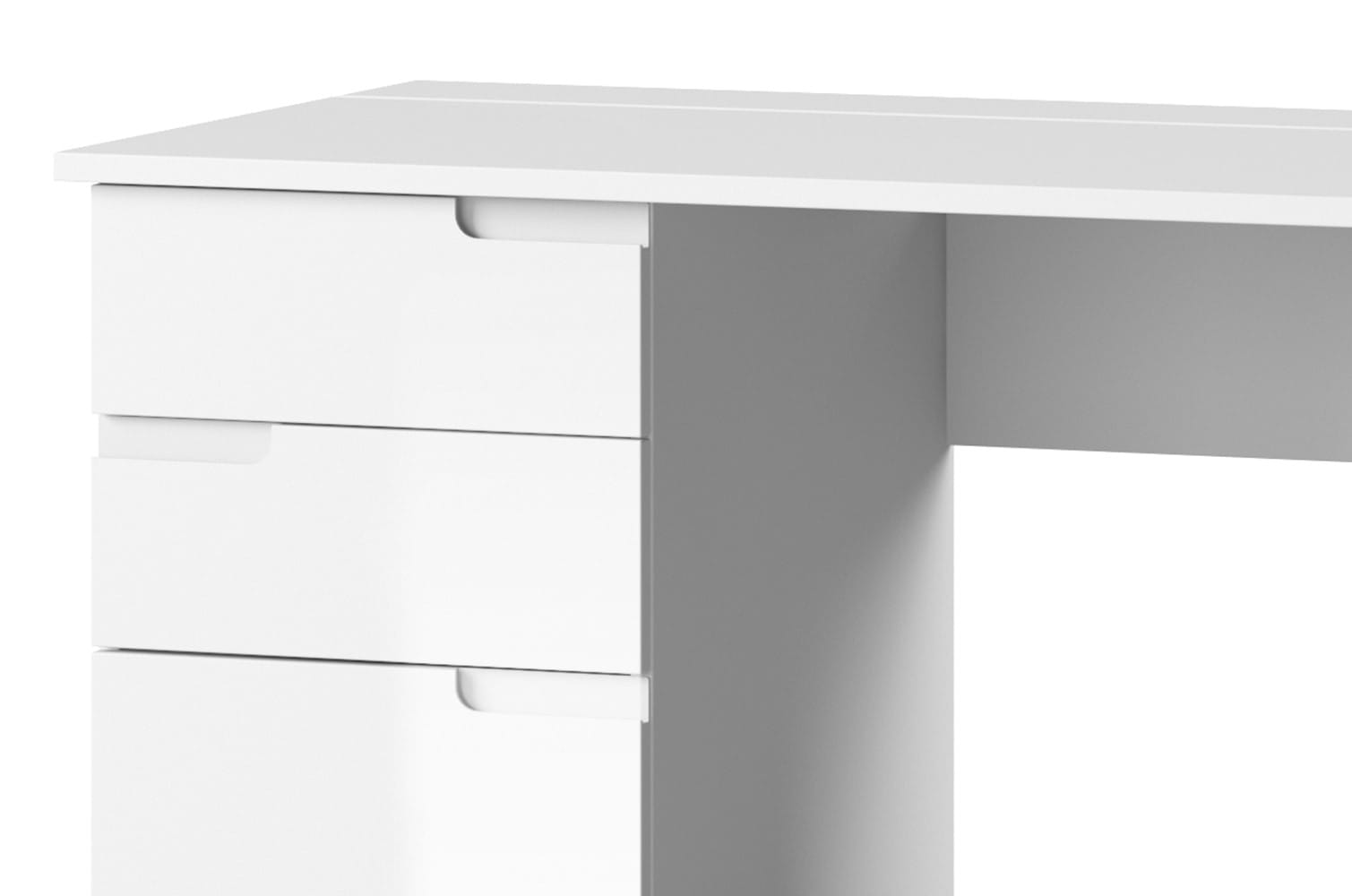 Biurko dwudrzwiowe z dwiema szufladami z kolekcji Selene to doskonały mebel dla osób szukających niebanalnych, a zarazem atrakcyjnych wizualnie projektów. Wyjątkowa linia stylistyczna, minimalistyczna forma i wykorzystanie najwyższej jakości materiałów sprawia, że biurko z linii Selene będzie doskonałym elementem wyposażenia każdego nowoczesnego wnętrza. Dwie pojemne szuflady i przestronna szafka pozwoli schować wszystkie niezbędne akcesoria i przedmioty. Biały kolor podkreśla nowoczesną linię stylistyczną i sprawia, że mebel doskonale będzie komponował się z każdym wnętrzem.