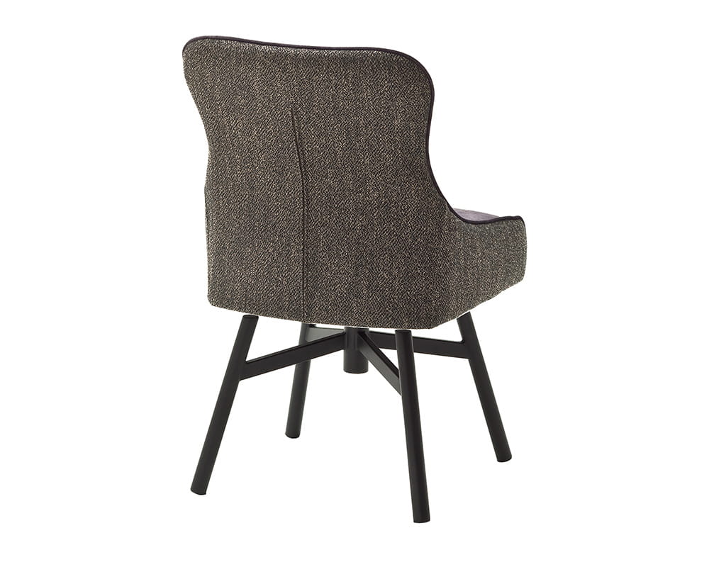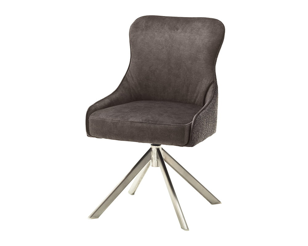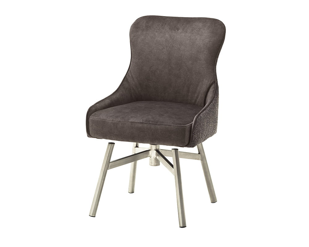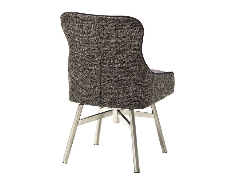 Prezentowany model z pierwszej miniatury to krzesło wykończone tkaniną w kolorze cappuccino na owalnych, metalowych nogach w kolorze antracyt mat.