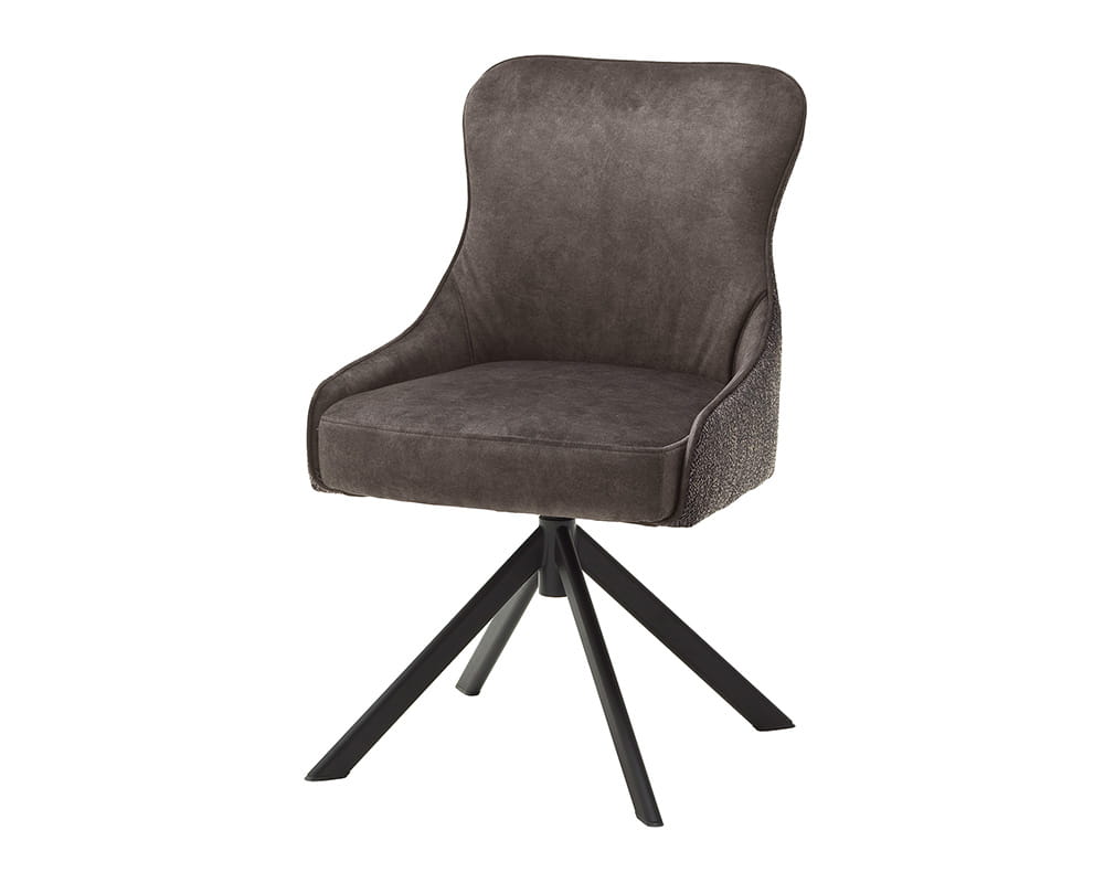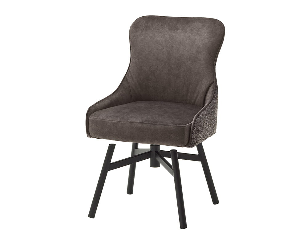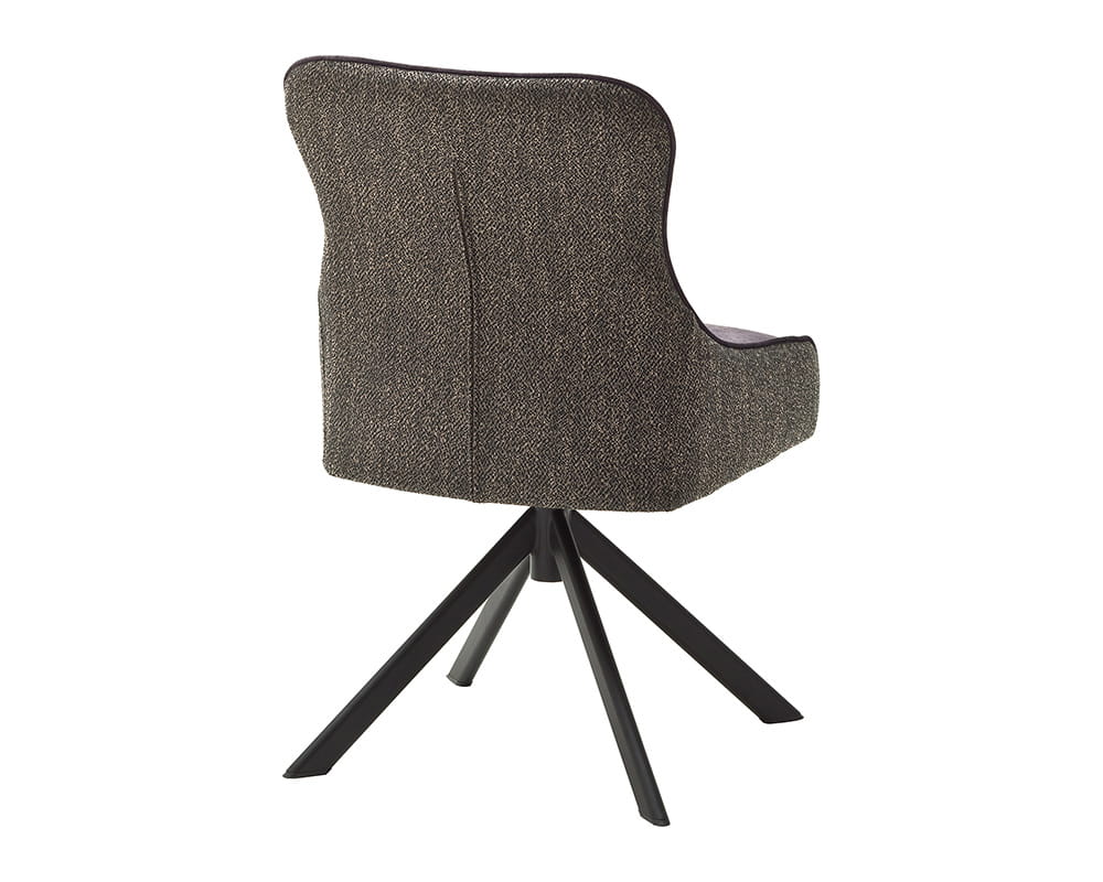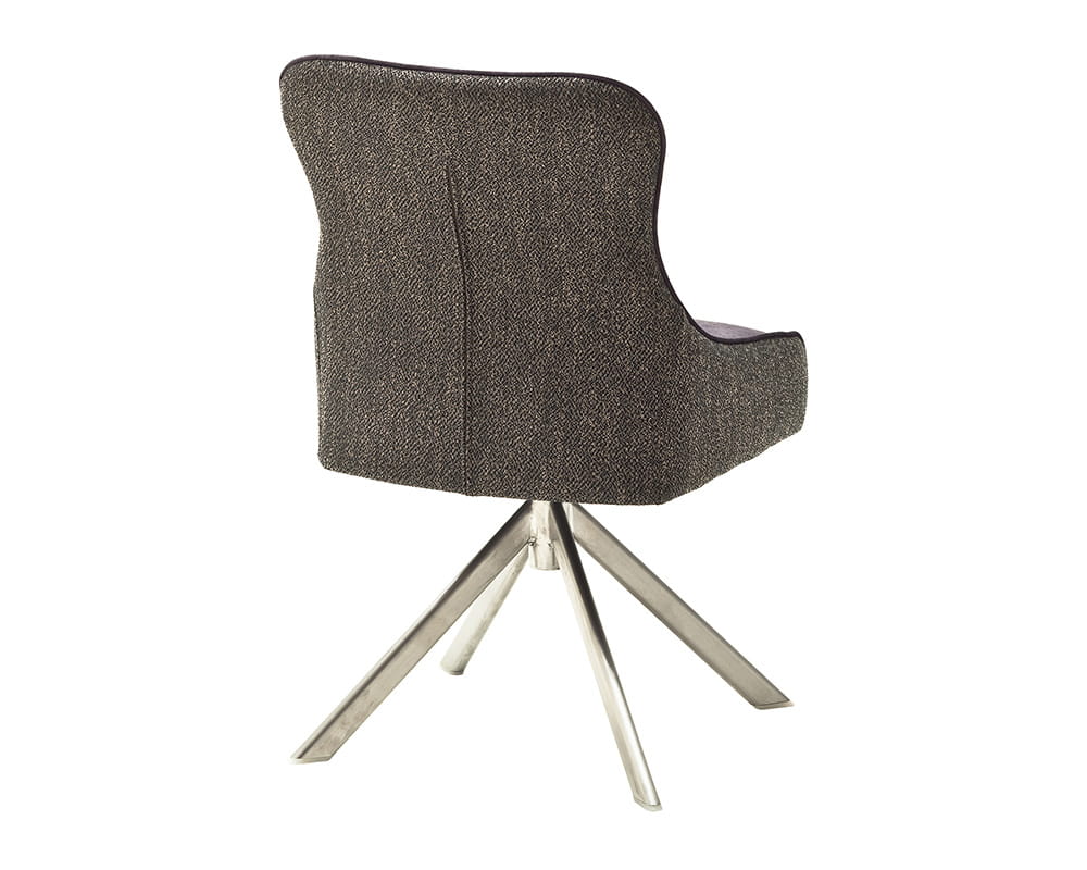 Prezentowany model z pierwszej miniatury to krzesło wykończone tkaniną w kolorze cappuccino na owalnych, metalowych nogach w kolorze antracyt mat.