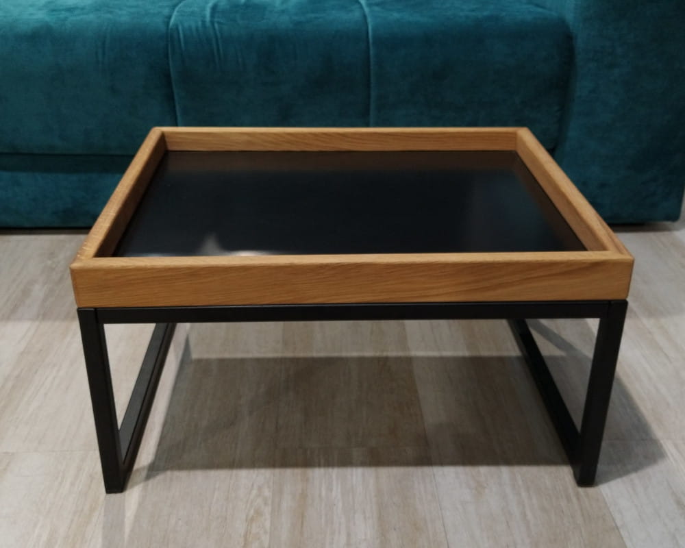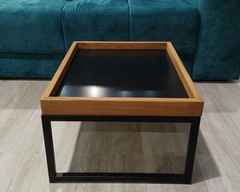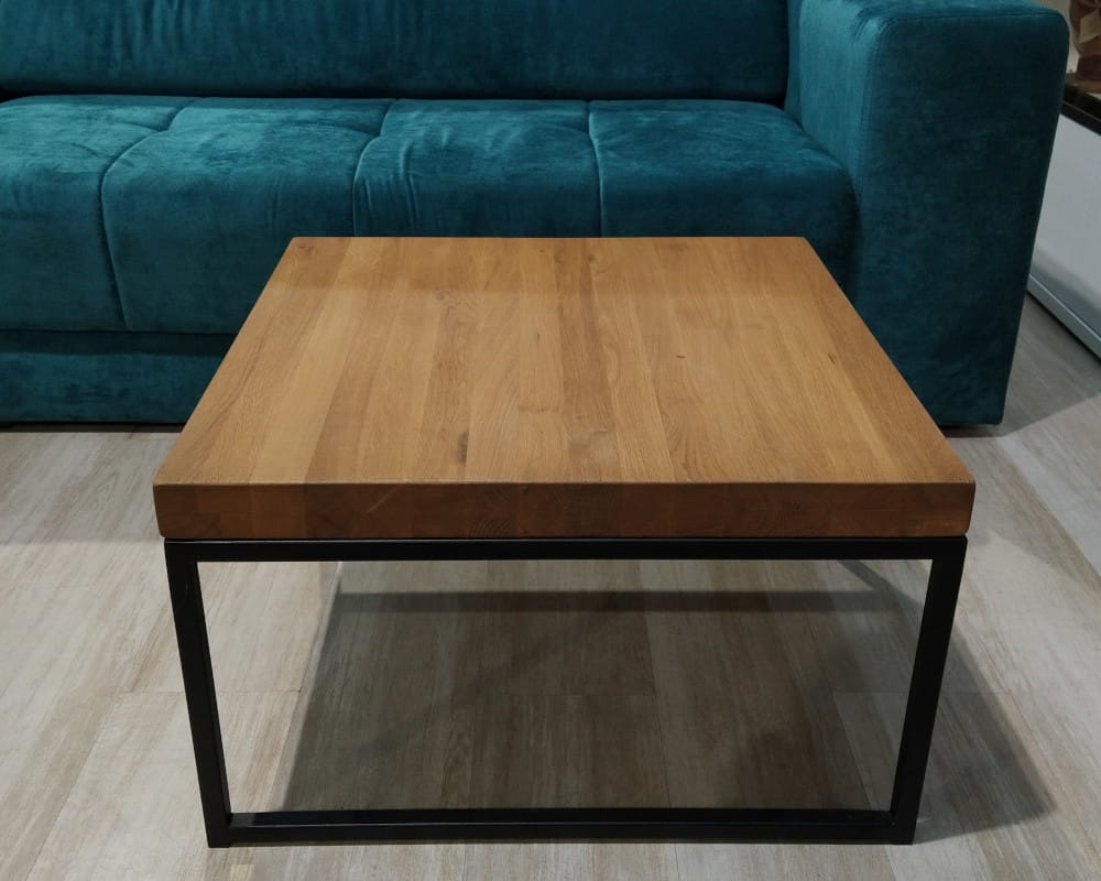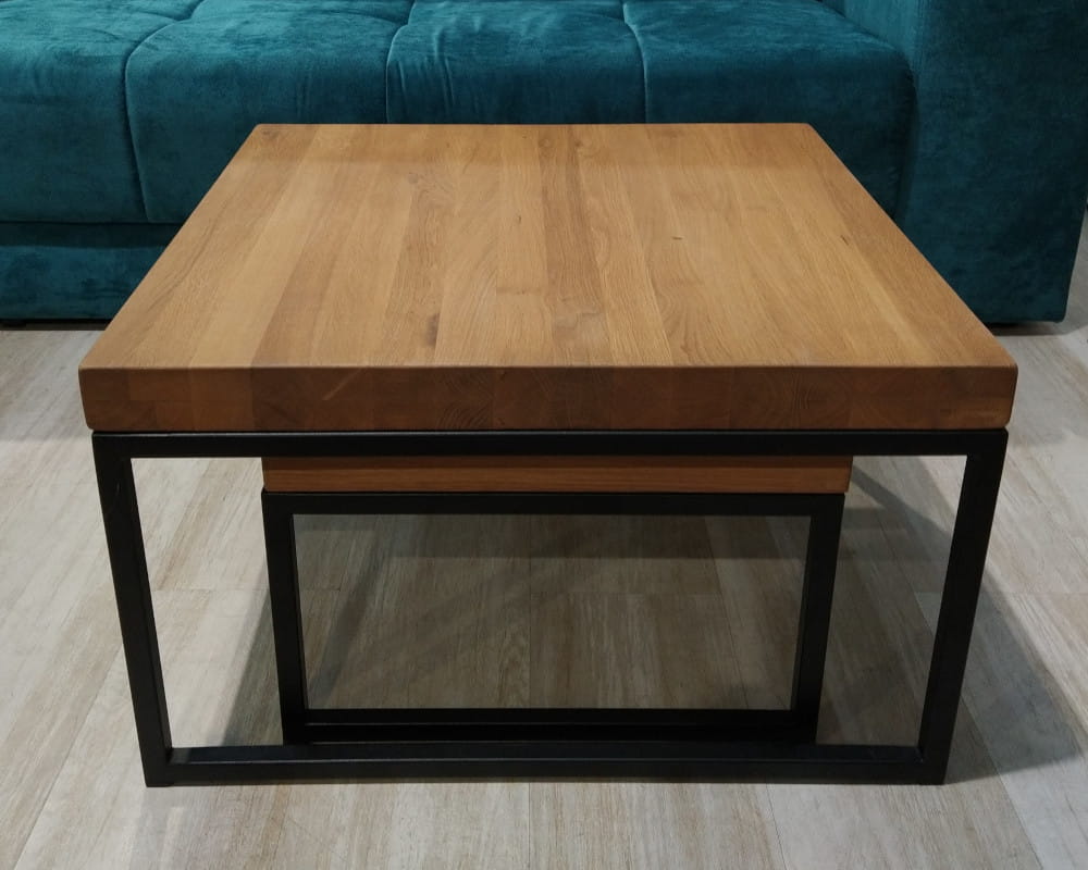 - Wykończenie: blat drewno sękate (olejowane) + metalowy stelaż (czarny)