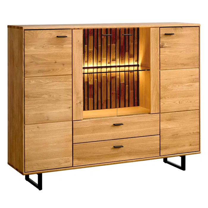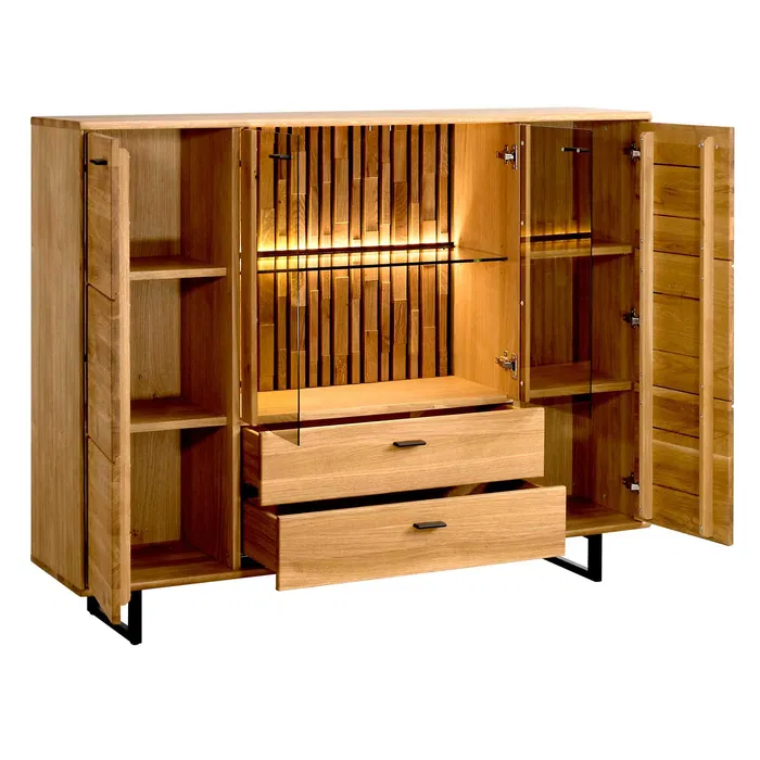 Model Tramonto to nie tylko estetyka, ale także praktyczne rozwiązania. Dzięki zastosowanemu oświetleniu i drewnianym lamelkom wewnętrznym, meble te tworzą unikalny klimat, a naturalne drewno dodaje przytulności i elegancji każdemu pomieszczeniu.