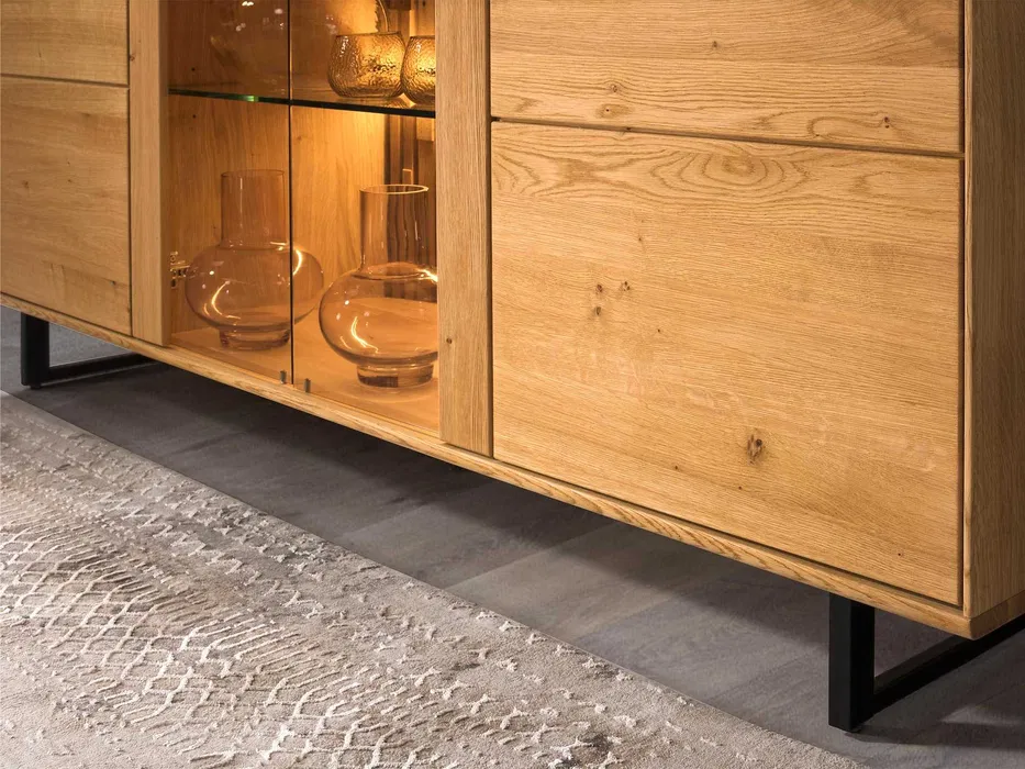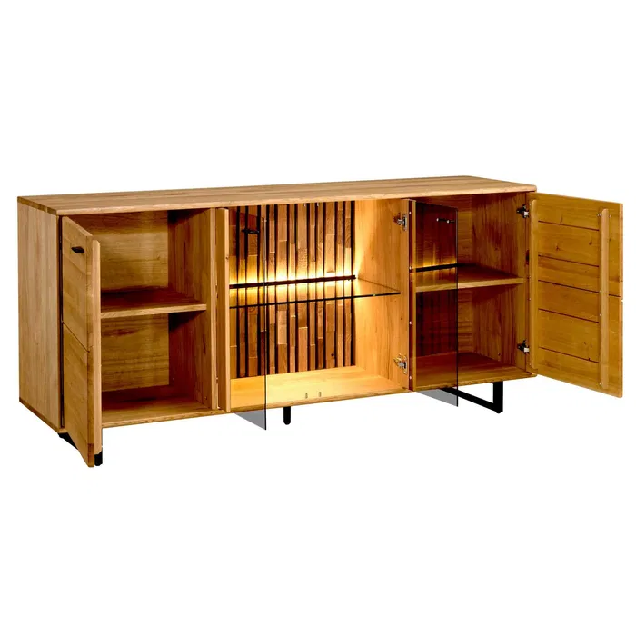 Model Tramonto to nie tylko estetyka, ale także praktyczne rozwiązania. Dzięki zastosowanemu oświetleniu i drewnianym lamelkom wewnętrznym, meble te tworzą unikalny klimat, a naturalne drewno dodaje przytulności i elegancji każdemu pomieszczeniu.