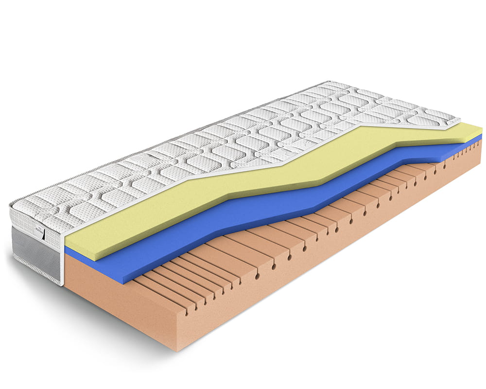 Materac Viscostar powstał poprzez połączenie pianki termoelastycznej Soft Touch z pianką Eliocell Soft i Eliocell Hard. Materac reaguje pod wpływem siły nacisku i temperatury empitowanej przez nasze ciało. Efektem jest lepsze krążenie krwi i spokojny sen.